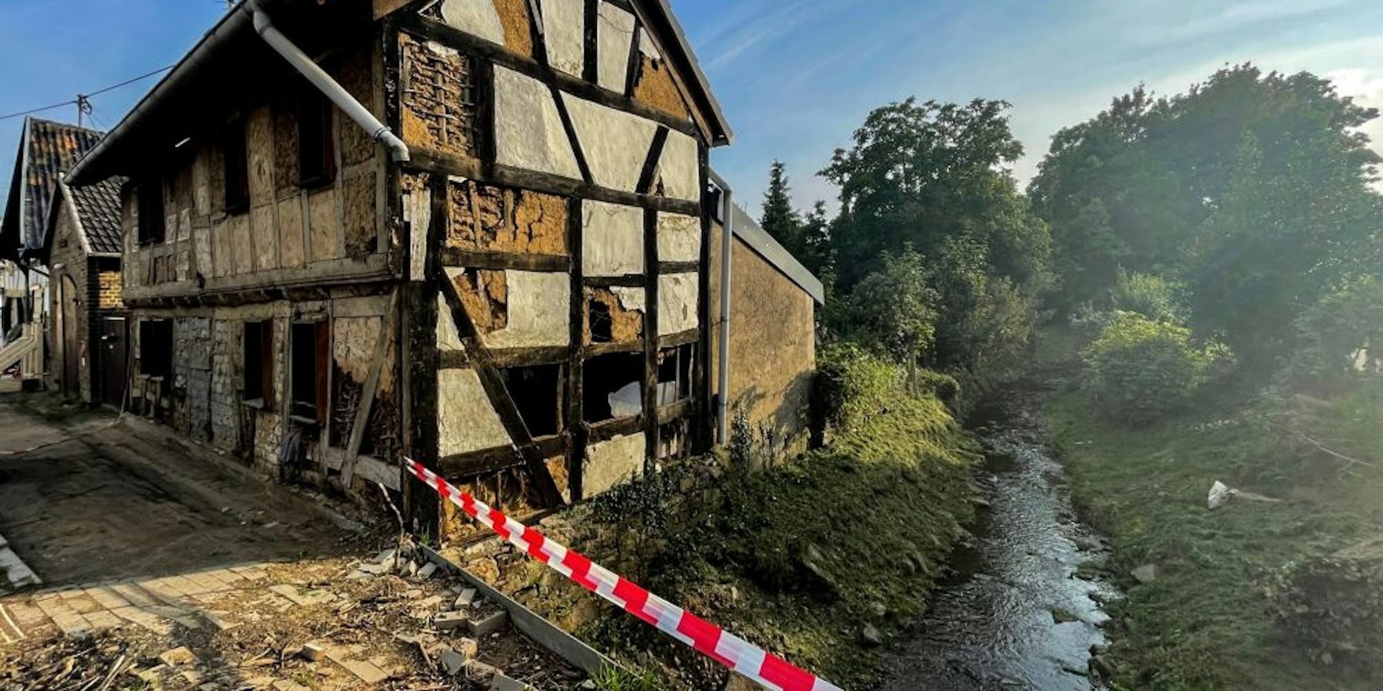 Nur einen Gefallen hat der Steinbach den Schweinheimern nicht getan: das Fachwerkhaus am Dorfplatz, direkt neben der Steinbach, zu zerstören. „Eigentlich sah es schon vor der Flut so aus. Vielleicht mit ein paar weniger Schäden. Aber eben schon lange der Schandfleck an prominenter Stelle“, sagt Monika Tilk: „Das Haus fotografieren alle Auswärtigen, weil sie denken, dass das der Inbegriff der Zerstörung um 14. Juli ist.“