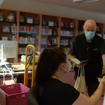 Die Bibliothek als Ort für die Übergabe hatte die Stadtverwaltung nicht von ungefähr ausgewählt. Nachdem die Einrichtung, die zum Kulturhof in der Wilhelmstraße gehört, von der Flut im Juli 2021 zu großen Teilen zerstört worden war, steht nun die Wiedereröffnung bevor. In den frisch sanierten Räumen, so hieß es, könne man deutlich sehen, „was mit Engagement und guter Zusammenarbeit in kurzer Zeit zu erreichen ist“.