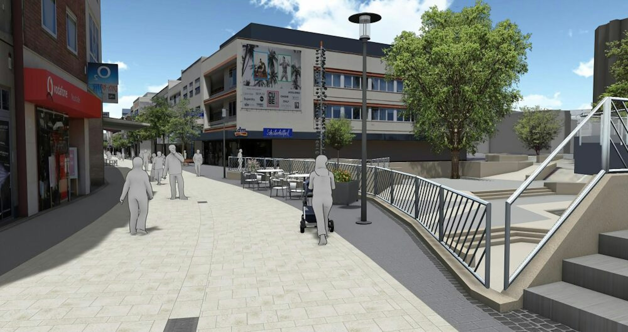 Der Blick in die Fußgängerzone soll großzügiger, der Aufgang zur Eisdiele neu gestaltet werden – so der Wunsch der Verwaltung.