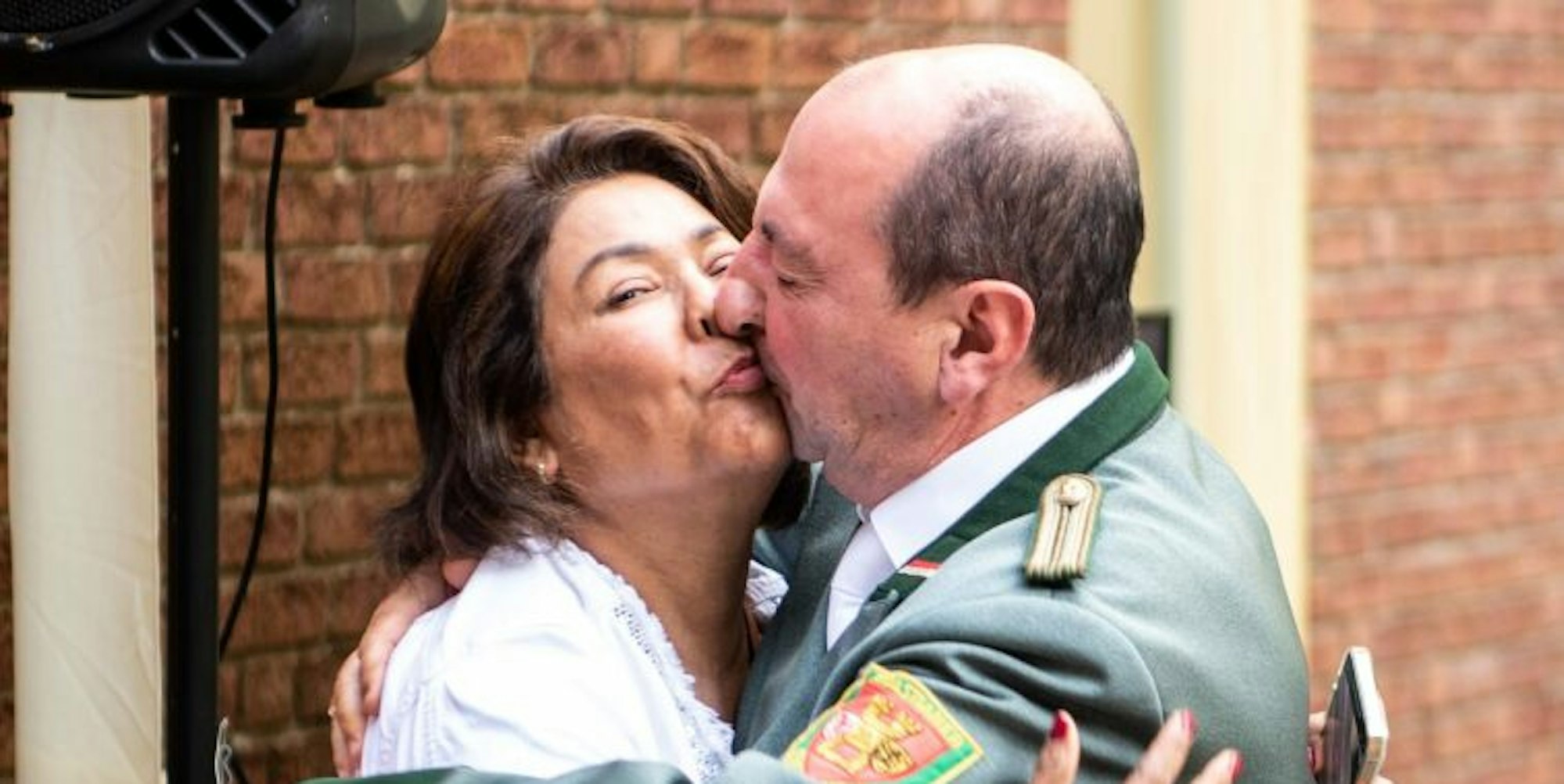 Der neue König der Euskirchener St.-Sebastianus-Schützen heißt Antonio Diaz. Nach dem Erfolg gab es einen Kuss.