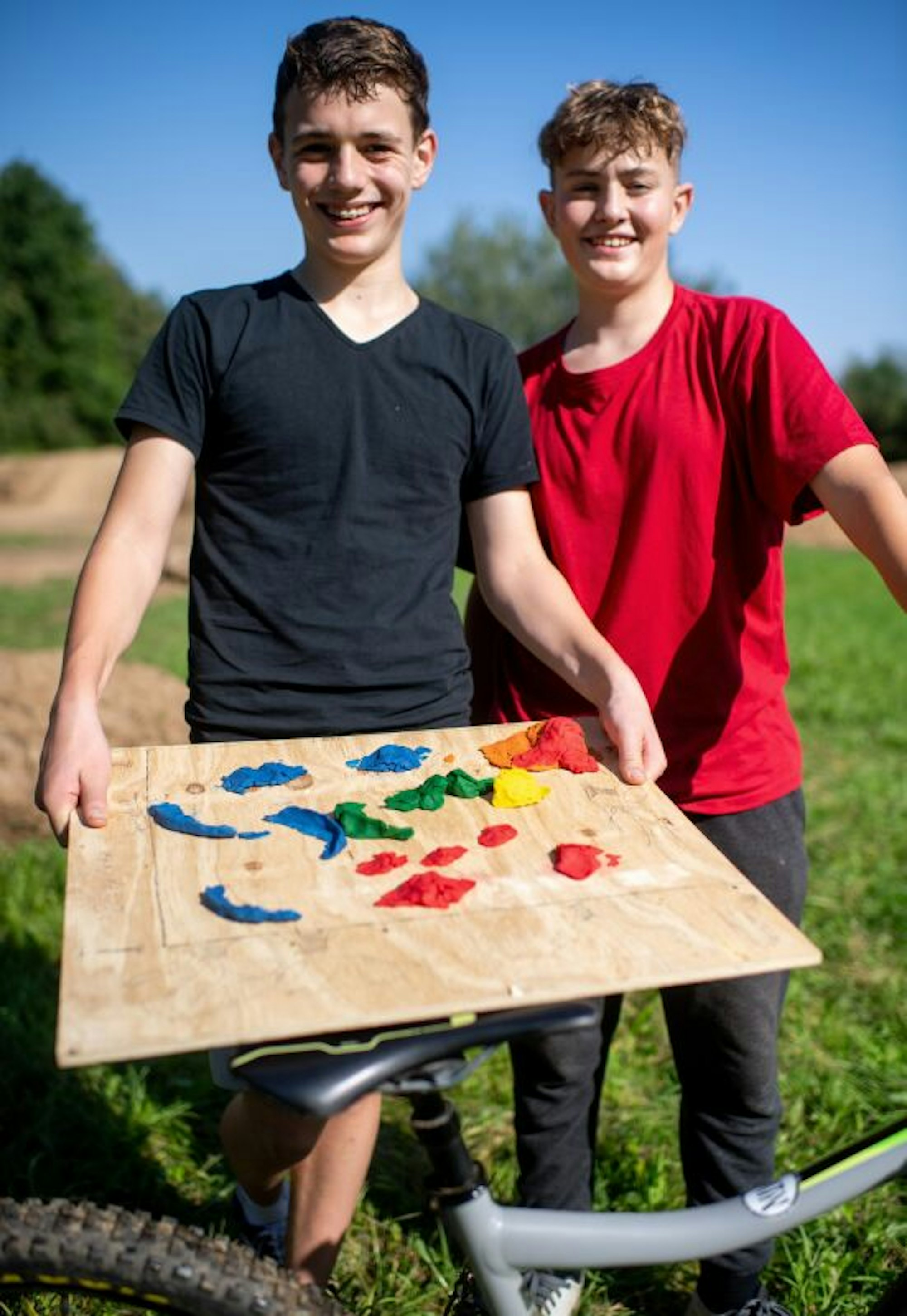 Mit Knete modellierten die beiden ihren zukünftigen Trail: Johannes Brock (l.) und Matthias Gabernack.