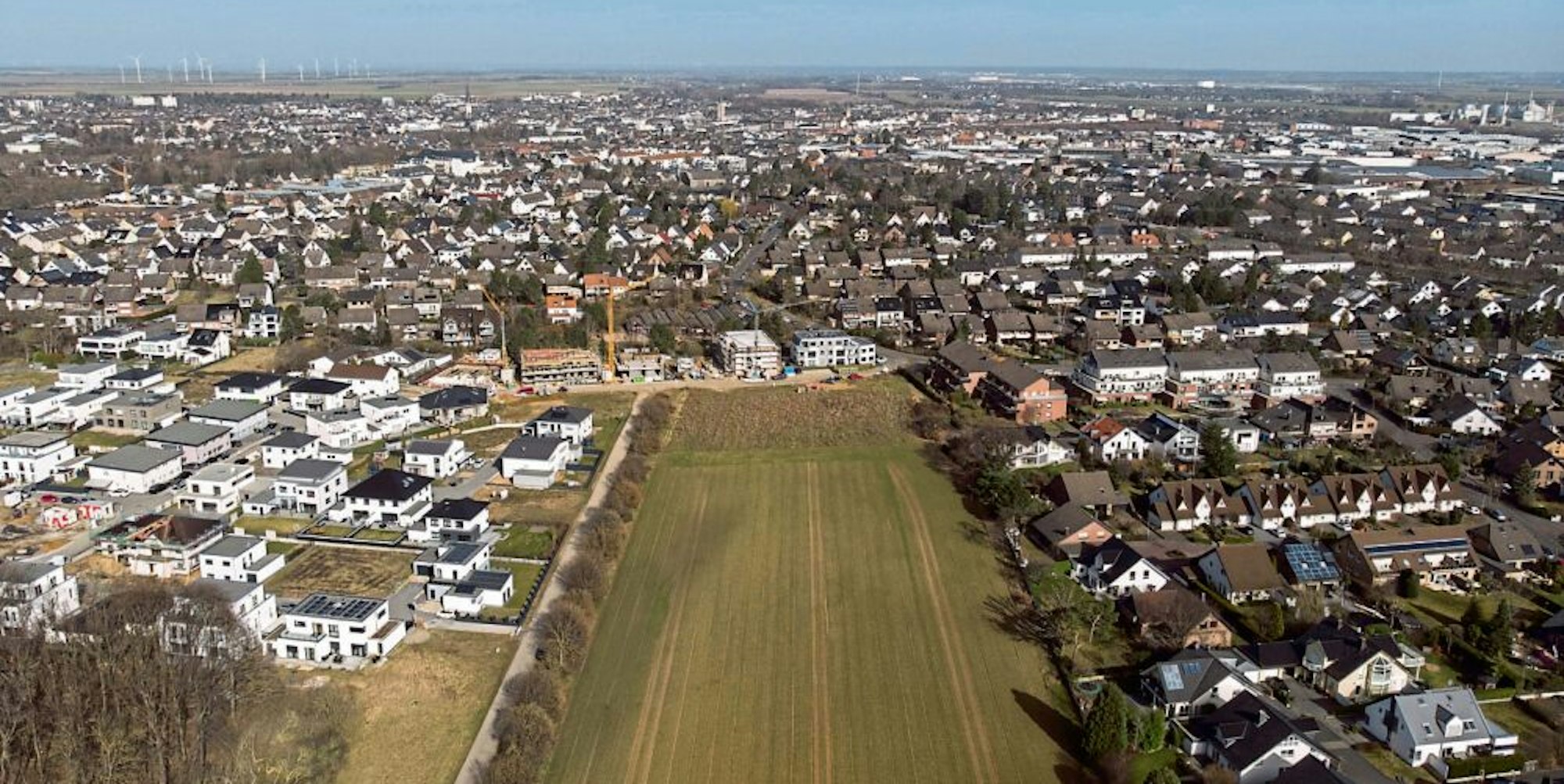 Aus einer Fläche zwischen den Wohngebieten Weiße Erde (l.) und Henri-Dunant-Straße, die heute Acker land ist, soll nach Vorstellung der Stadtverwaltung ein „Natur-Erfahrungsraum“ werden.