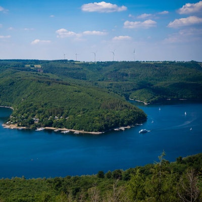 Eßer hält auf einem Waldweg an und steigt aus. Er will zeigen, warum es so gefährlich ist, wenn die Rehe gehetzt werden. Keine zwei Meter neben dem Wagen geht es ziemlich steil bergab hinunter zur Rur. Am Hang sind kantige Felsvorsprünge zu sehen. Der sonnige Steilhang sei beliebt bei den Rehen. Hier hätten sie ihre Ruhe, sagt er. Doch wenn die Tiere panisch würden, passiere es immer wieder, dass sie in die Tiefe stürzten. „Zwei bis drei hole ich jedes Jahr aus der Rur“, sagt Eßer.