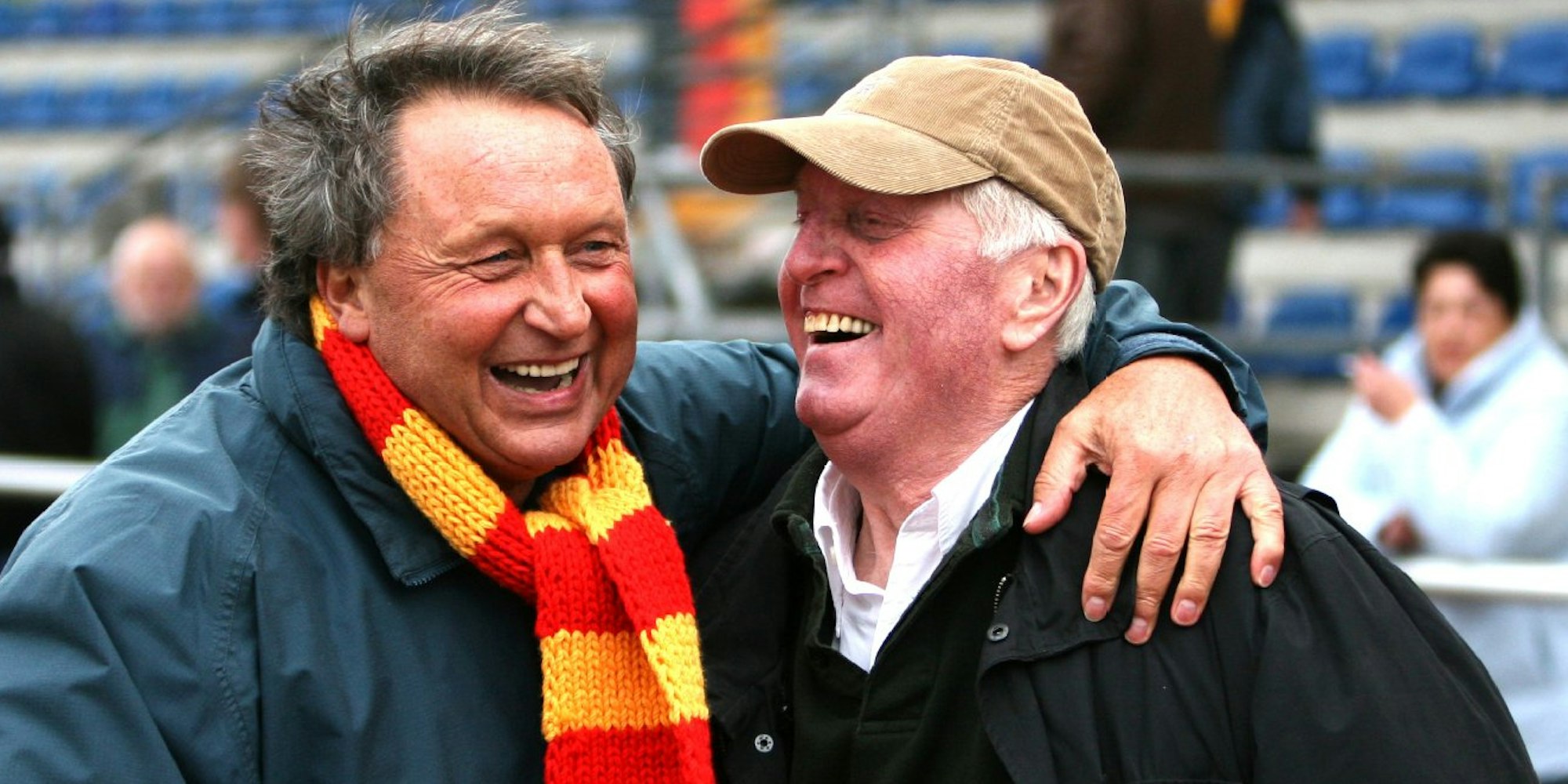 Hatten stets viel zu lachen: Heinz Flohe (links) herzt Heinz-Willi Trimborn.