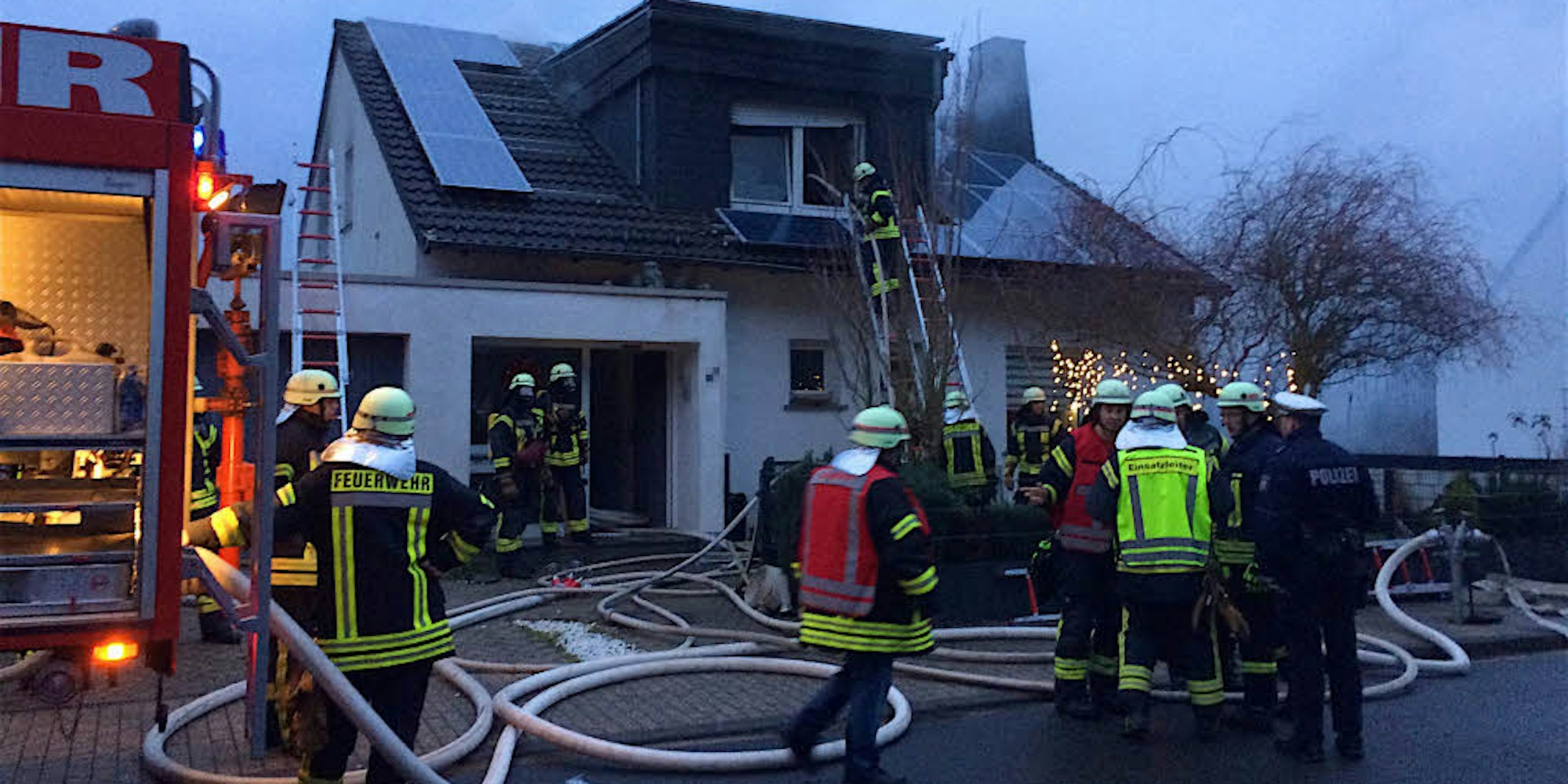 Eine Photovoltaikanlage auf dem Dach stellte für die Feuerwehr laut Pützer kein Problem dar. Von der Drehleiter aus konnte ein Löschangriff durch ein Fenster hindurch vorgenommen werden.