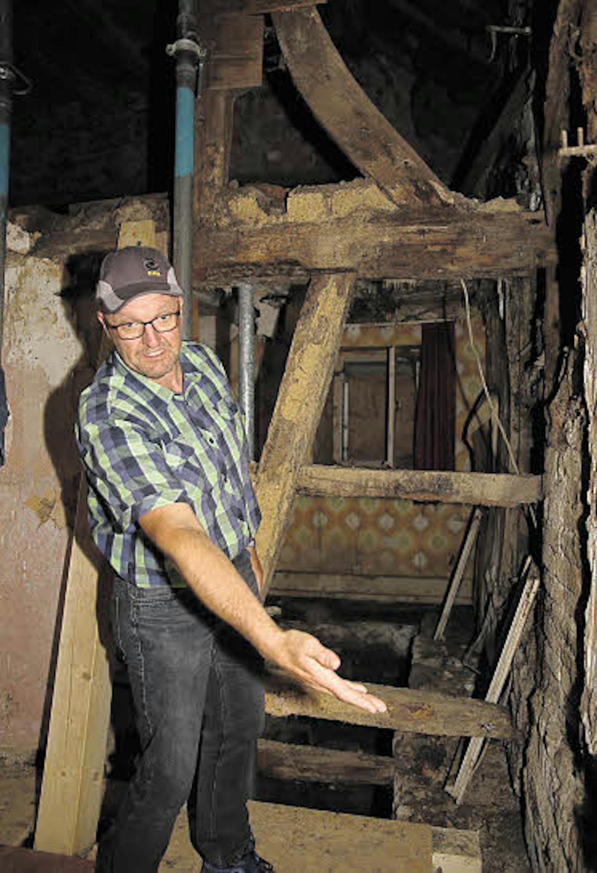 Den Zustand des Gebäudes bezeichnet Westerburg als „katastrophal“. Balken seien teilweise weggefault und einst mit Steinen abgestützt worden. Man könne stellenweise das verfaulte Holz mit der Hand herausnehmen. Im Frühjahr des vergangenen Jahres hat die Gemeinde das Haus unter anderem mit Stützen gesichert.
