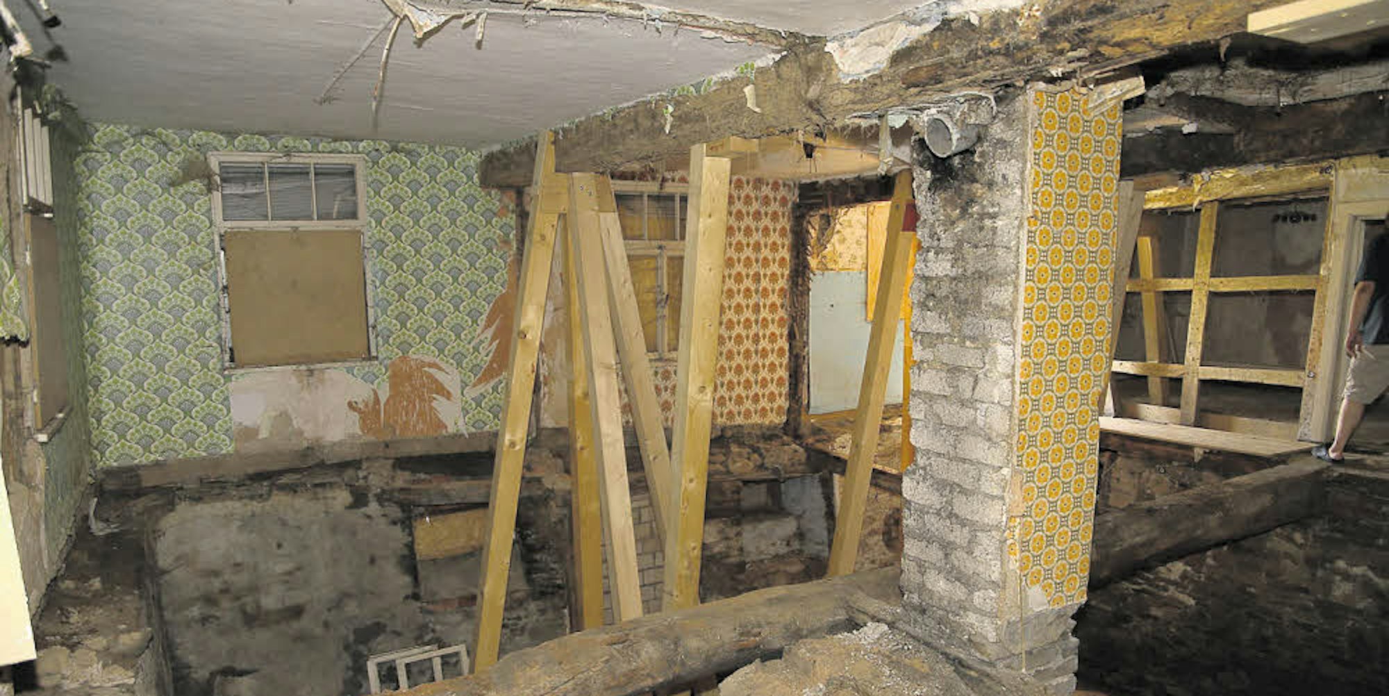 Mit massiven Stützen wurde das Dach des Hauses Kremer, in dem sich einst eine Lohgerberei befand, abgestützt.