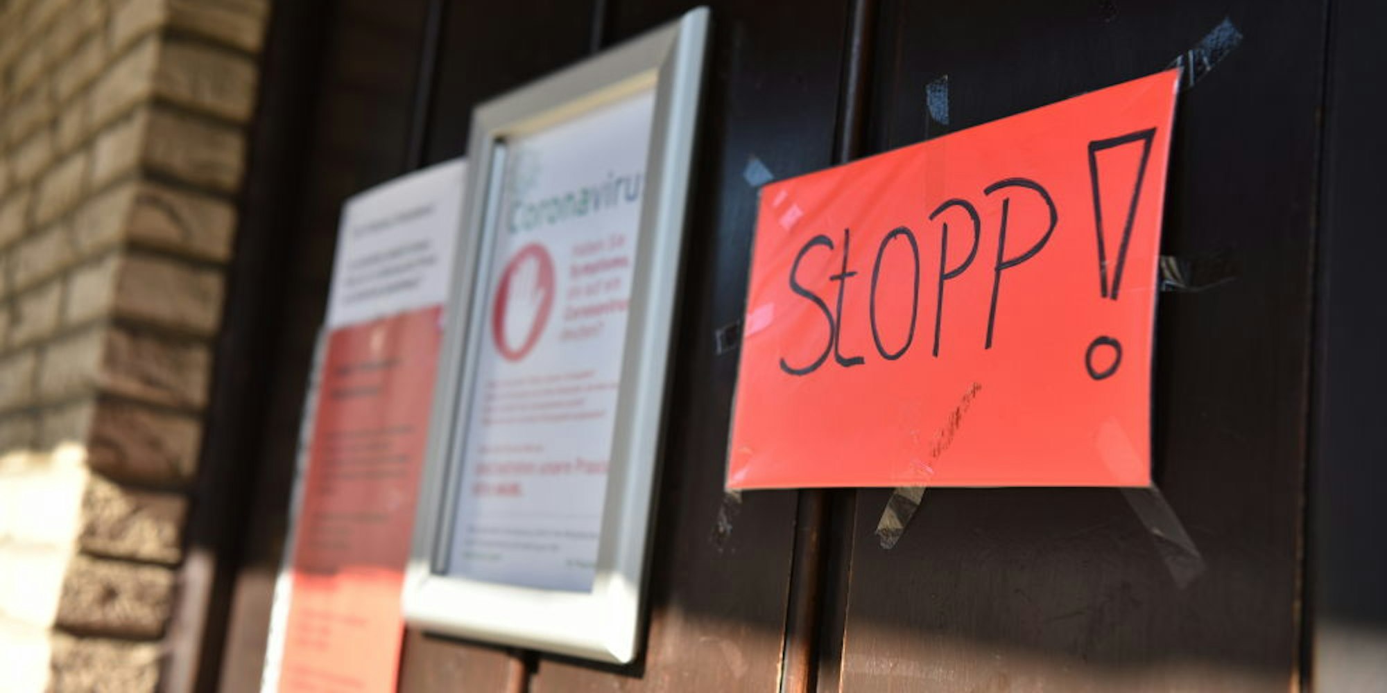 Coronavirus-EpidemieStoppschild an der Praxistür – Arzt berät per Telefon
