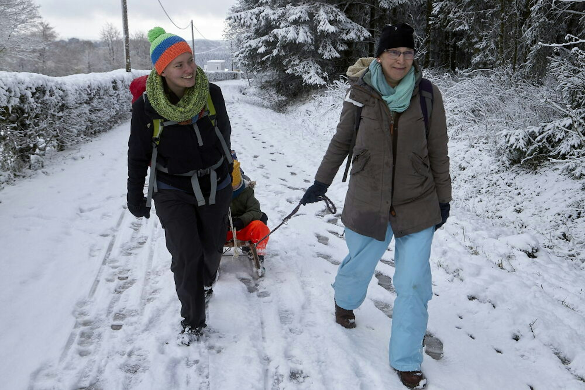 In einer kleinen Gruppe mit zwei Kindern war Christiane Daus aus Mönchengladbach auf dem Rodelhang unterwegs. Für sie stellte die vorweihnachtliche Schlittenpartie eine schöne Überraschung dar. „Wir sind über das Wochenende in der Jugendherberge in Hellenthal, und da kam der Schnee wie bestellt“, sagte sie. Es sei fast so, als seien sie in Winterurlaub gefahren, ergänzte sie schmunzelnd. Über mehrere Stunden vergnügte sich die Gruppe im Schnee. „Am Anfang war der Schnee noch sehr pulverig, aber dann ging es ab“, so ihr Urteil über die ersten Flocken dieser Saison.