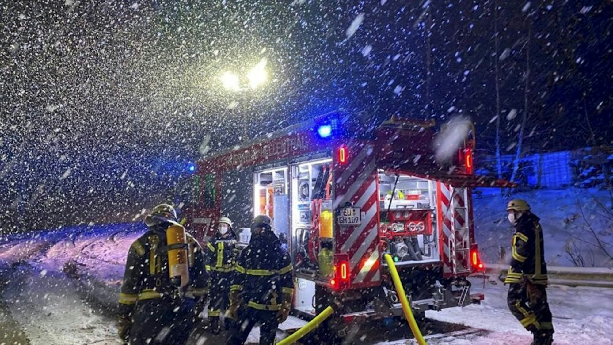 Über eine Strecke von mehreren Hundert Metern versorgten sich die Einsatzkräfte mit Löschwasser aus einem Oberflurhydranten. Im heftigen Schneetreiben gelang es den Feuerwehrleuten, den Brand zu löschen. Allerdings wurde das Blockhaus völlig zerstört.