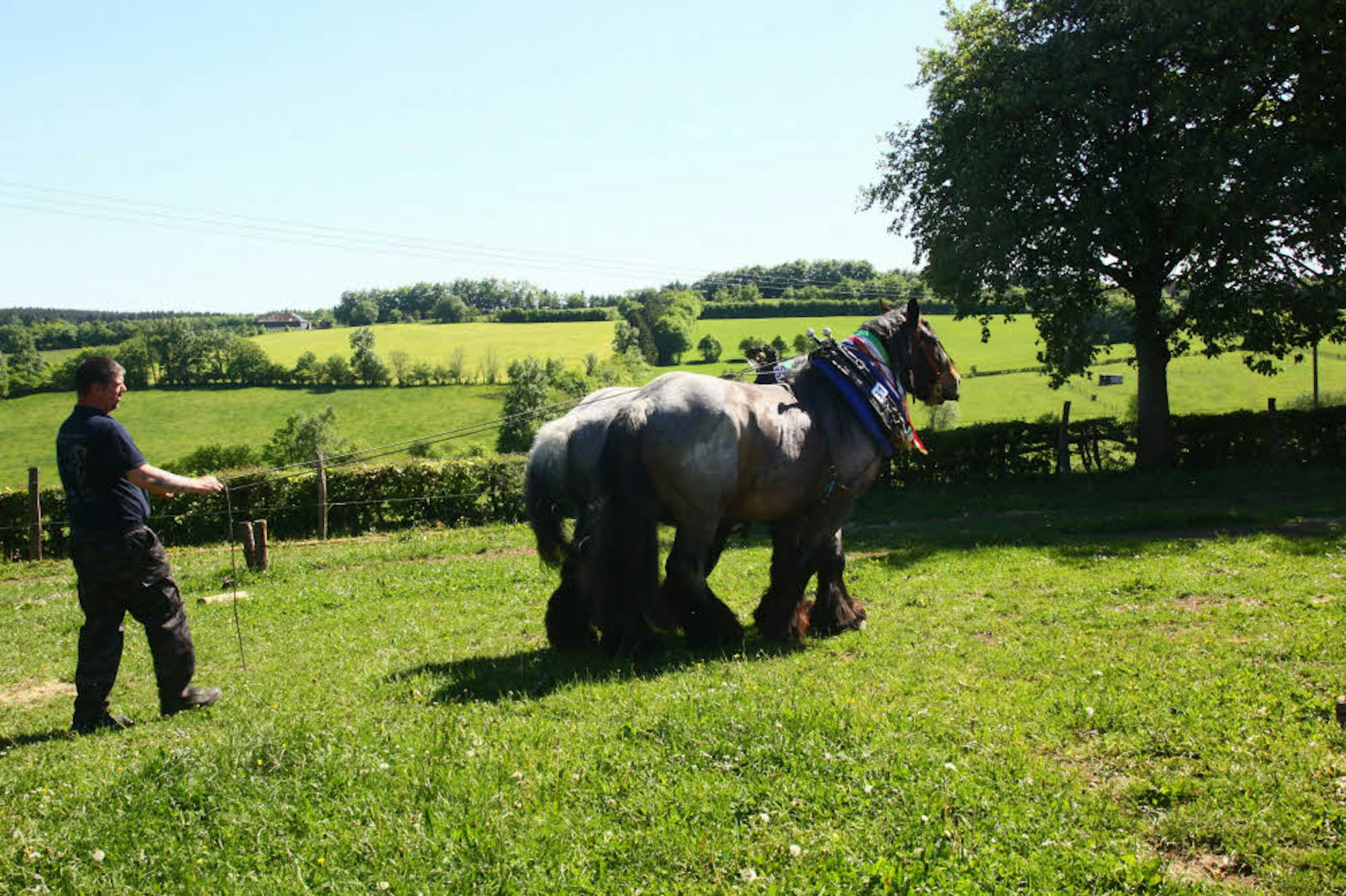 Zöll ist mit seinen beeindruckenden Blauen Belgiern eine bekannte Erscheinung in der Eifel. Seit Jahren geht er vor allem im Raum Düren und Aachen in die Wälder, um dort, wo Maschinen nicht eingesetzt werden, gefällte Baumstämme an die Wege zu ziehen. Doch dass die rund 800 Kilo schweren Kaltblüter mehr können, zeigt er immer wieder, wenn er sich mit seinen Pferden auf den Wettbewerben der versammelten Konkurrenz stellt.