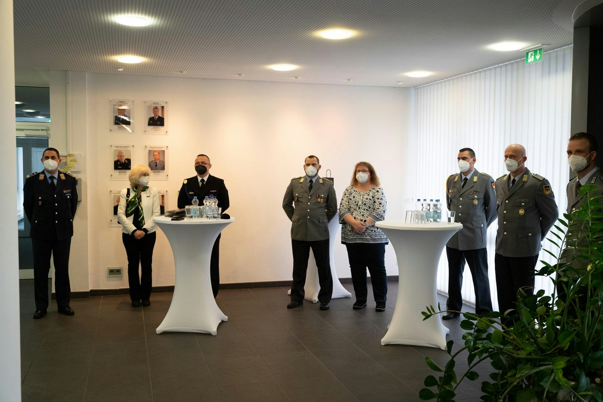 Retter und Gerettete: Bärbel M., Hauptbootsmann Roy Mondry, Hauptfeldwebel Denis Engelmann und Bianca L. (v.l.) bei der Feierstunde in der Kaserne.