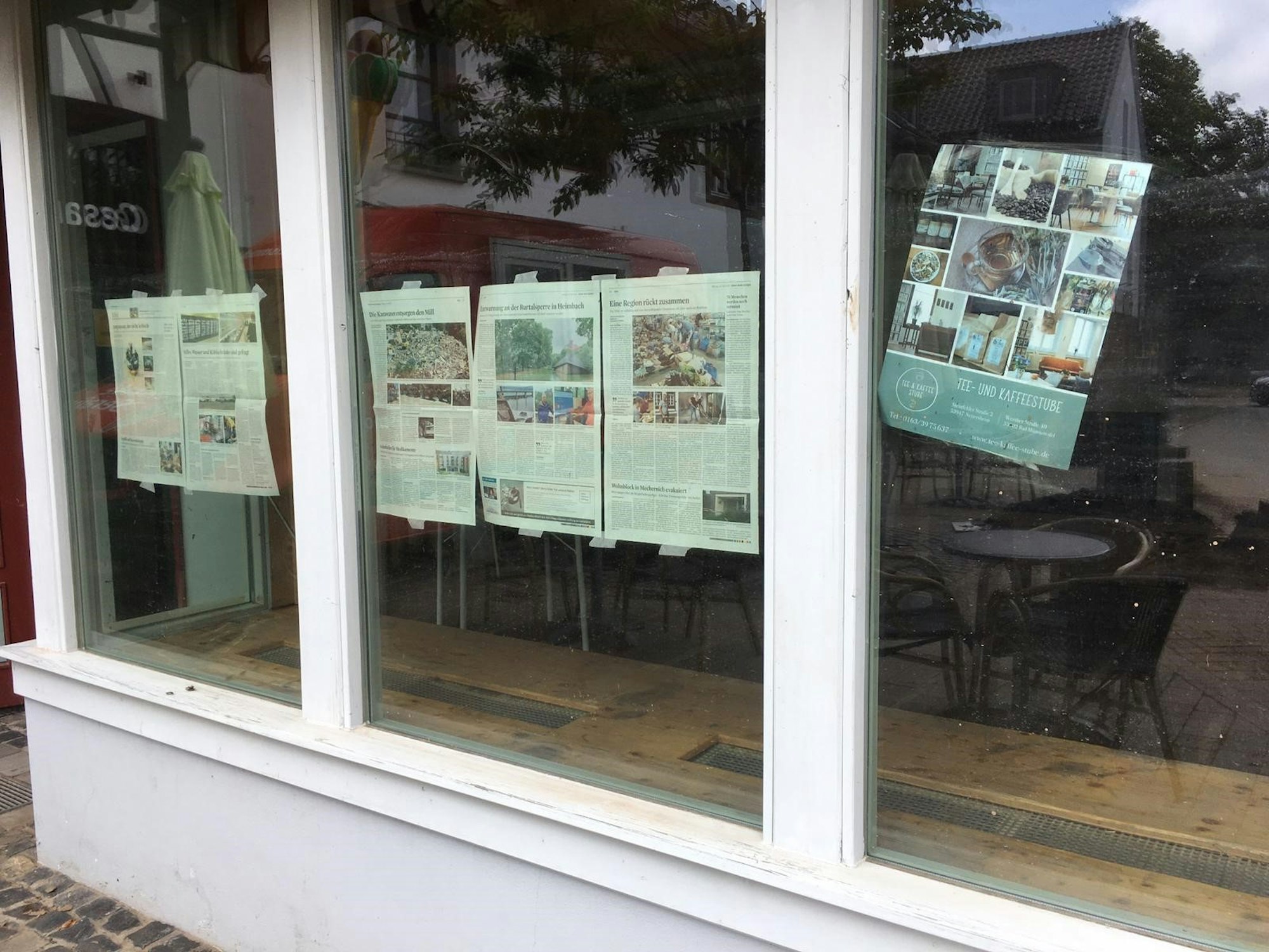 Dabei waren und sind gerade Informationen so wichtig für die Menschen, vor allem für die, die abgeschnitten waren. Redaktionsmitarbeiter und Kolleginnen in Rente zogen los und hängten an zentralen Orten Zeitungsseiten aus. An Essenausgaben und Unterkünfte liefern wir Zeitungsstapel, die dort an die Menschen ausgegeben werden.