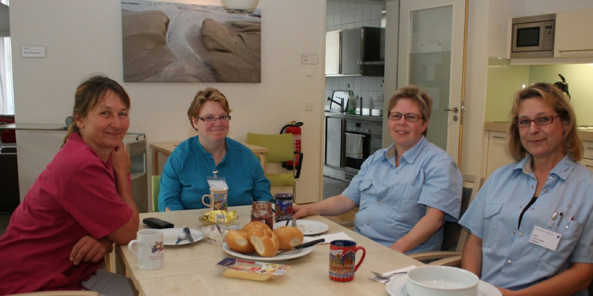Sabine Sauer, Nicola Weny, Christine Luppus und Christine Poensgen nutzen auch die Frühstückspause, um sich untereinander auszutauschen. Bild: Tucholke
