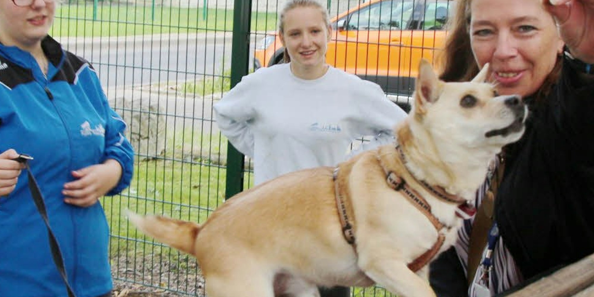 Bei Sonnenschein und kühlem Wind versammelten sich gestern neben Jean Gruenwald, dem Geschäftsführer von Nestlé Purina PetCare, und der Euskirchener Purina-Pressesprecherin Susanne Munz sowie ihrer Kollegin Sarah Wendel auch Mona Vossen mit ihrem Mischling Fly, Melina Frankemölle mit ihrem Australian Shepherd Taylor, Lisa Vossen mit Mischling Sally und Nicole Trimborn mit dem Australian-Mix Mogli, sowie Mitglieder der im Kreis ansässigen Tierschutzvereine.