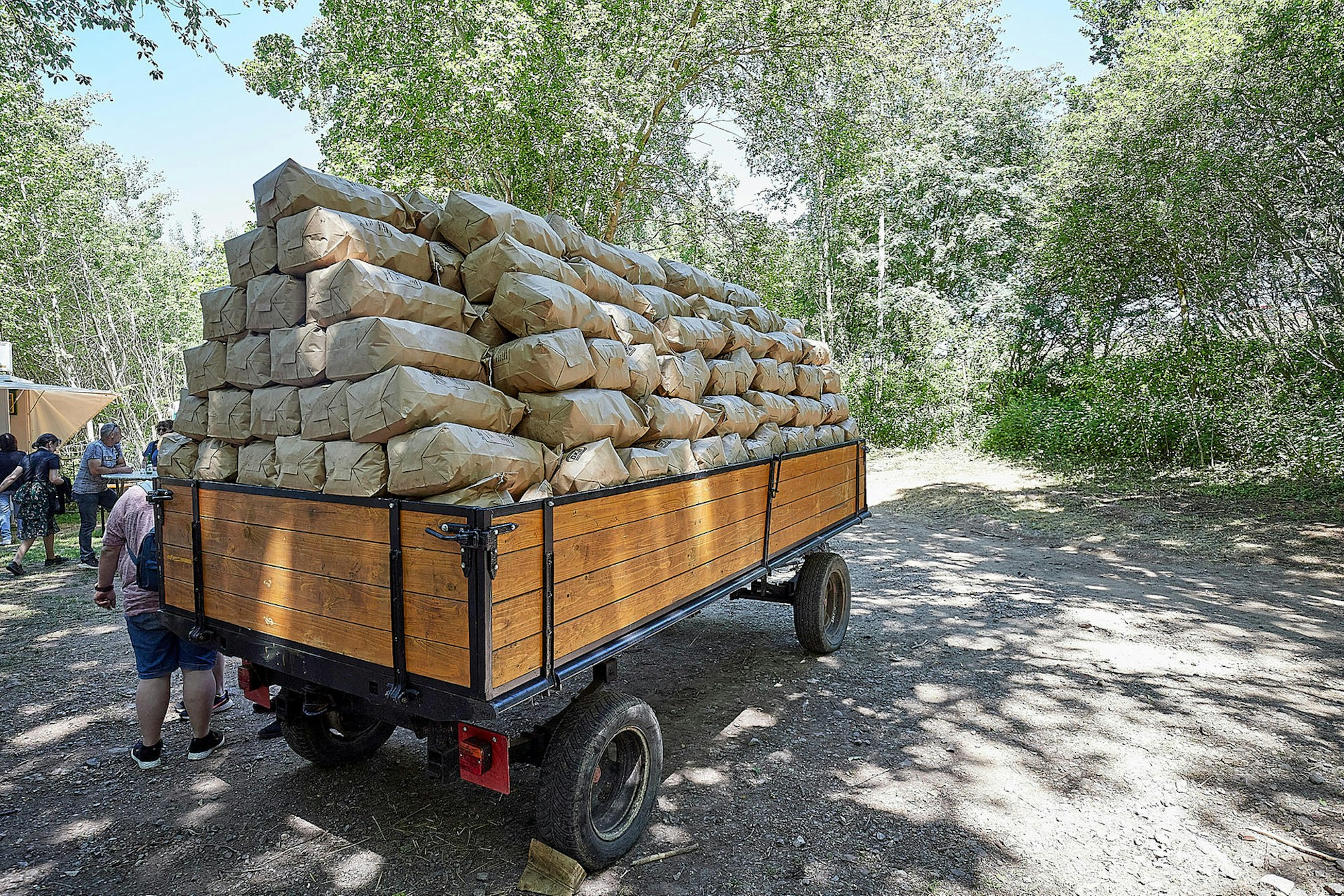 „Wir haben gute Holzkohle geerntet, aber besonders ist, dass wir diesmal sehr große Stücke haben“, sagte er. Rund 80 Kilo Holzkohle könne mit einem Raummeter Holz erzeugt werden. Deshalb rechne er mit bis zu 4,5 Tonnen, die aus den 60 Festmetern Buchenholz entstanden seien.