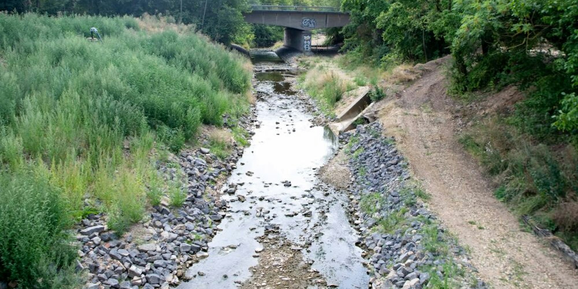 Die Erft ist im Bereich der Kölner Straße in Euskirchen praktisch trockengefallen.