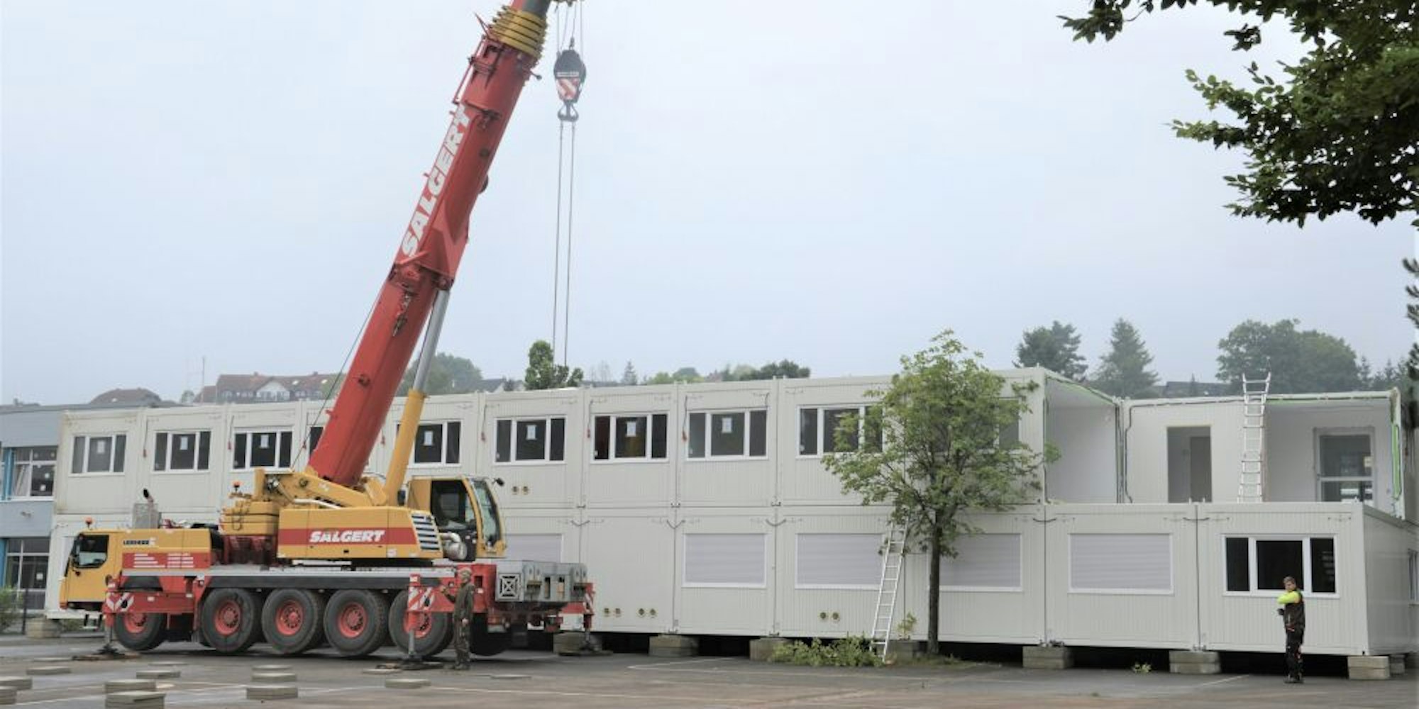 Die Containeranlage auf dem Parkplatz der Kaller Grundschule soll in rund vier Wochen bezugsfertig sein.