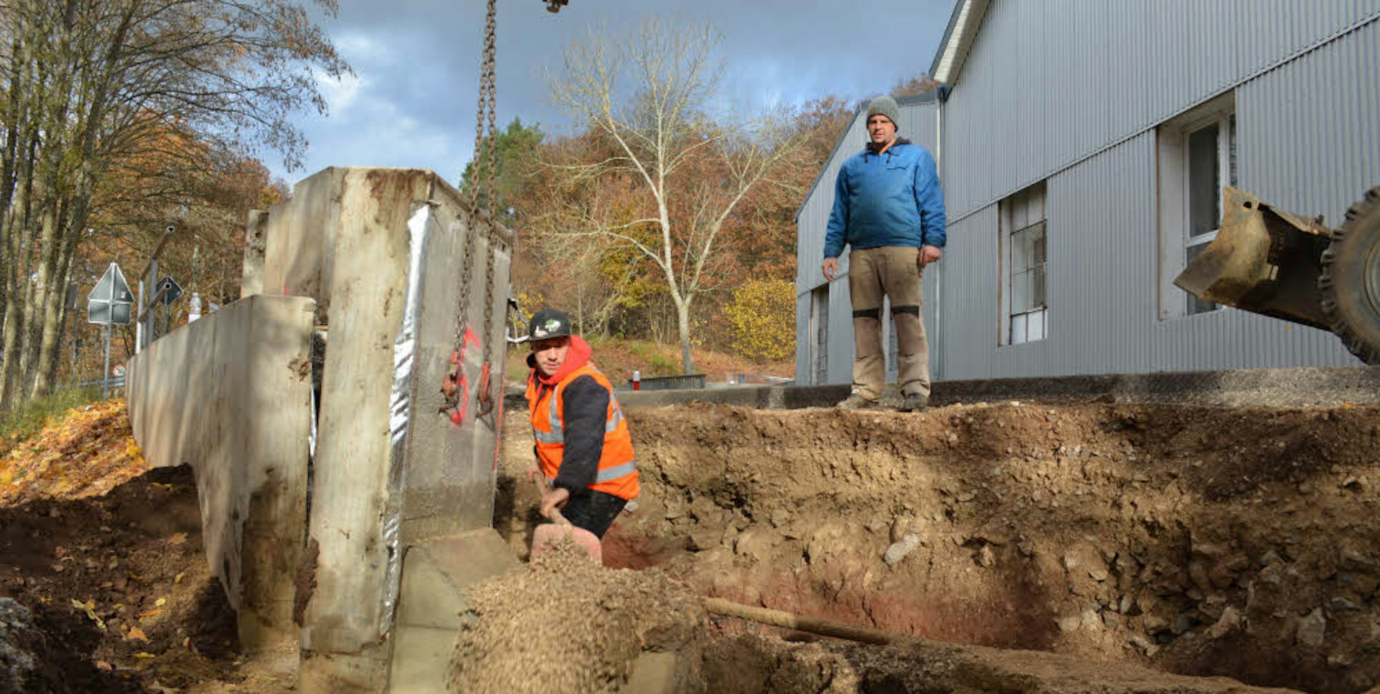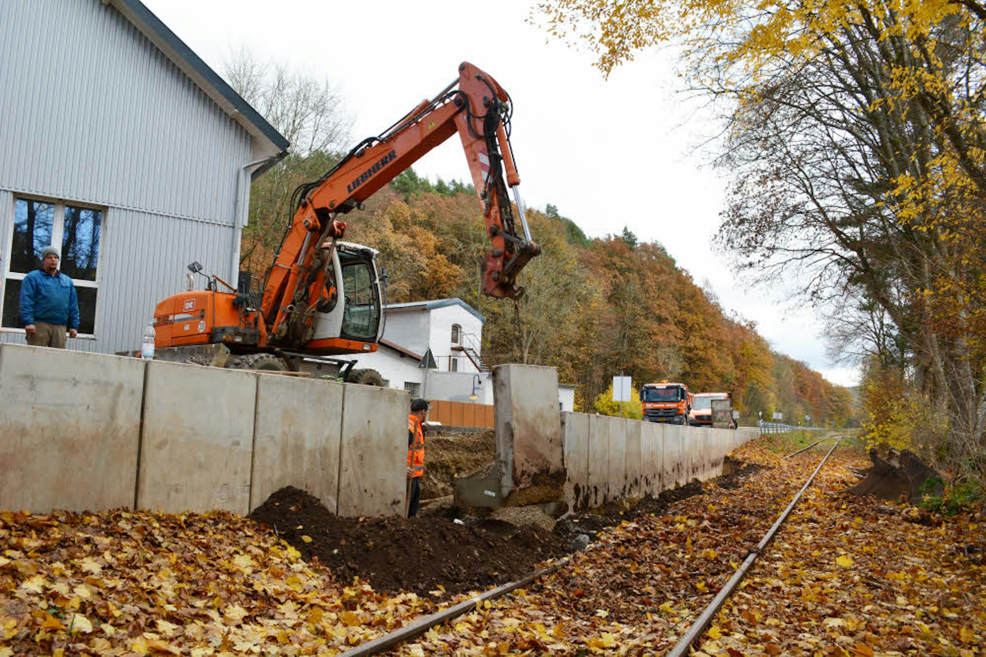 Derzeit ist eine Baufirma aus Irrel damit beschäftigt, die Stützmauer abzureißen und die Straße soweit zurückzubauen, dass ein Mindestabstand zum Bahngleis eingehalten wird. Es seien 26 Zentimeter, die die Mauer vom Bahngleis wegrücken müsse, erläuterte Gerhard Decker, Leiter der Euskirchener Niederlassung von Straßen NRW. Zurzeit ist die L 204 in Richtung Kall komplett gesperrt, die Bauarbeiten sollen voraussichtlich am 26. November beendet sein.