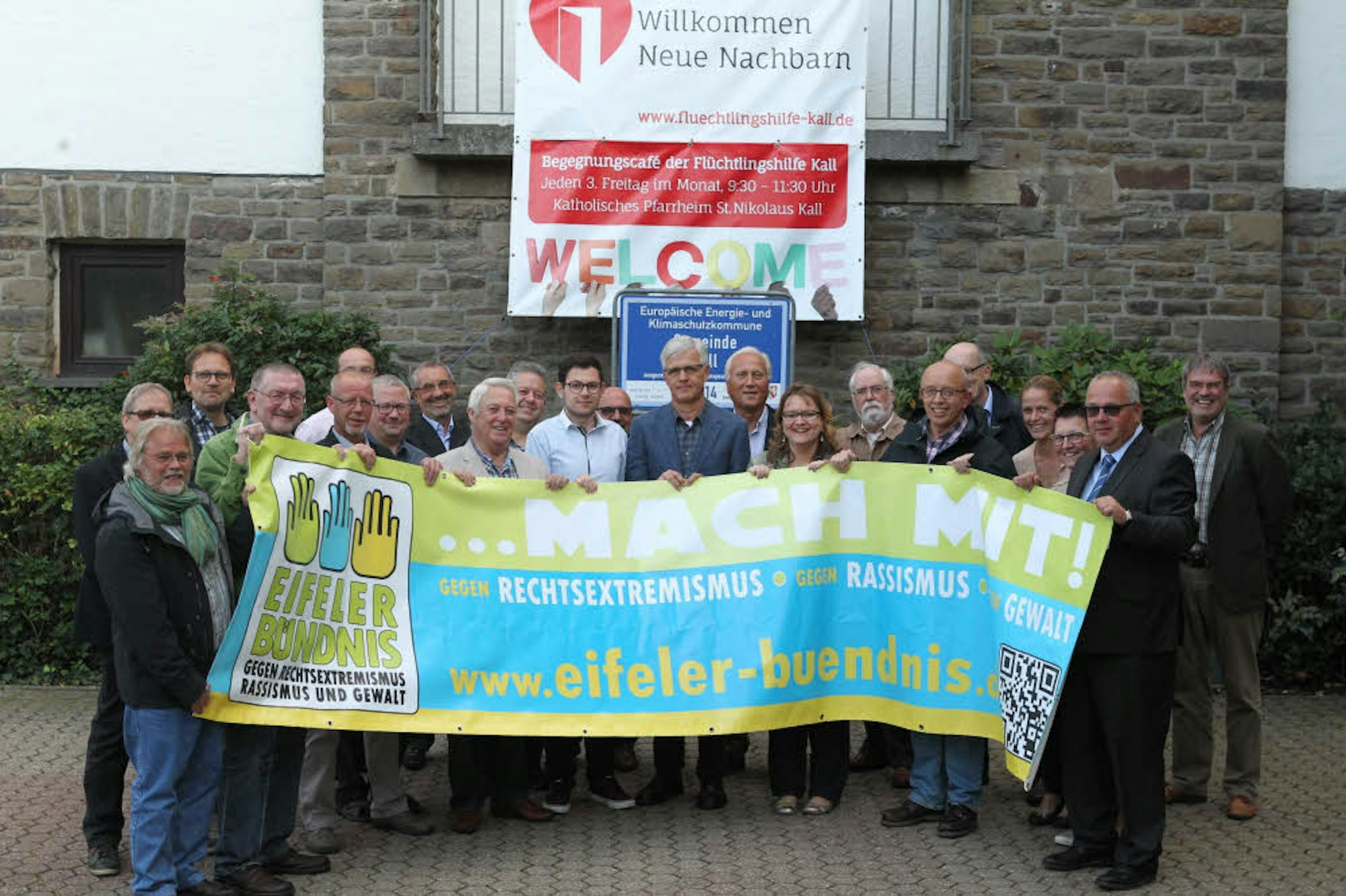 Die Sitzung des Gemeinderats begann am Dienstag eher ungewöhnlich: Die Politiker versammelten sich zunächst vor dem Rathaus, um mit einem Transparent des Eifeler Bündnis’ gegen Rechtsextremismus, Rassismus und Gewalt ein Zeichen des stillen Protests gegen die AfD-Veranstaltung zu setzen.