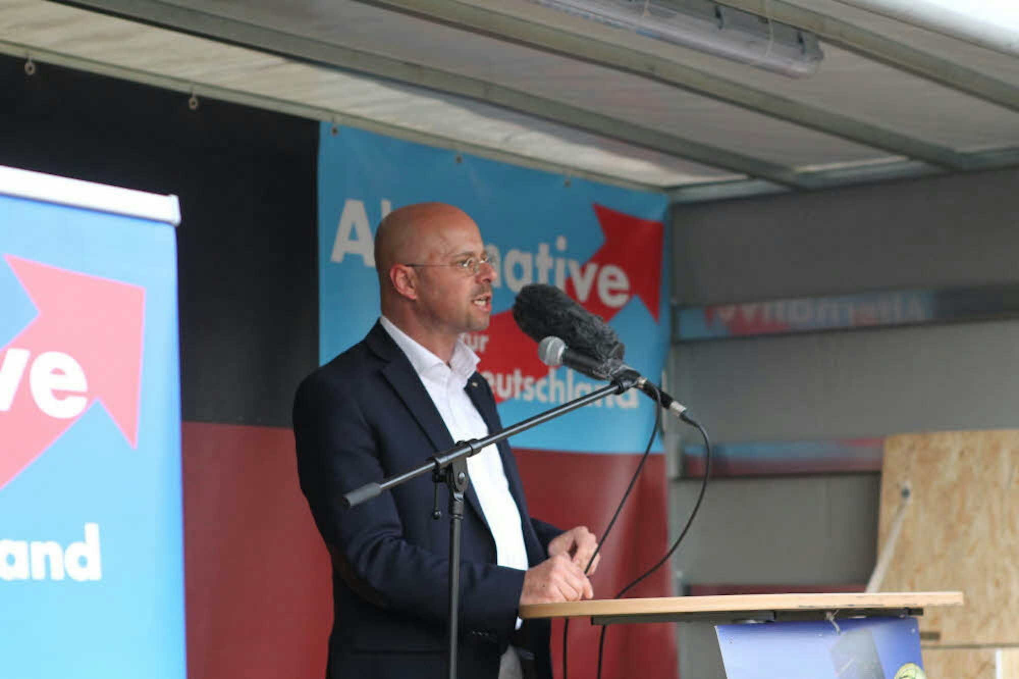 Die Bundesregierung und die etablierten Parteien bekamen von allen Rednern kräftig ihr Fett weg. Kalbitz sprach von der Bildungspolitik als „institutionalisierte Verblödungspolitik“, von der Sozialpolitik als „Asozialpolitik“. Er forderte, die Grenzen dicht zu machen, und sprach von „Versorgungsflüchtlingen“, die nicht verfolgt seien und kein Bleiberecht hätten. Er kündigte an, all die Etablierten würden nach der Wahl am 24. September ihr „blaues Wunder“ erleben, wenn die AfD das Land „vom Kopf auf die Füße stellen“ werde. Während Lucassen sich auch mit der Verschuldung der Kommunen befasste und die Briten lobte, mit dem Brexit als Erste die Konsequenz aus der Erkenntnis zu ziehen, dass ein „gleichgeschaltetes Europa“ nicht funktioniere, knöpfte sich Renner unter anderem seine „Lieblingszielgruppe, die 68er“ vor. Er band auch das Pfeifkonzert in seine Rede ein. Bei entsprechenden Pointen wies er die Gegendemonstranten darauf hin, dass sie nun pfeifen könnten – was sie ohnehin konstant taten.