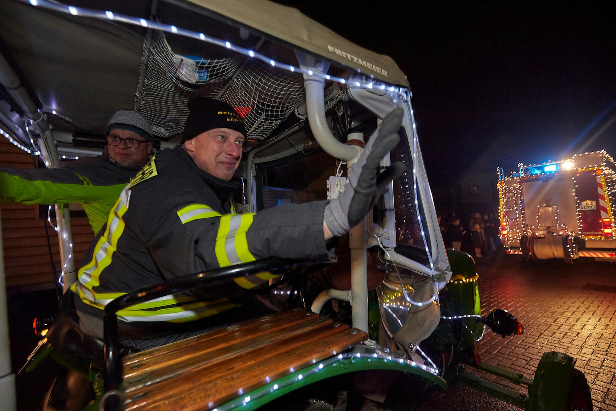 Den Nikolaus an Bord hatte Lukas Keutgen, der mit dem liebevoll dekorierten Fahrzeug der Kaller Feuerwehr den Lichterzug anführte.