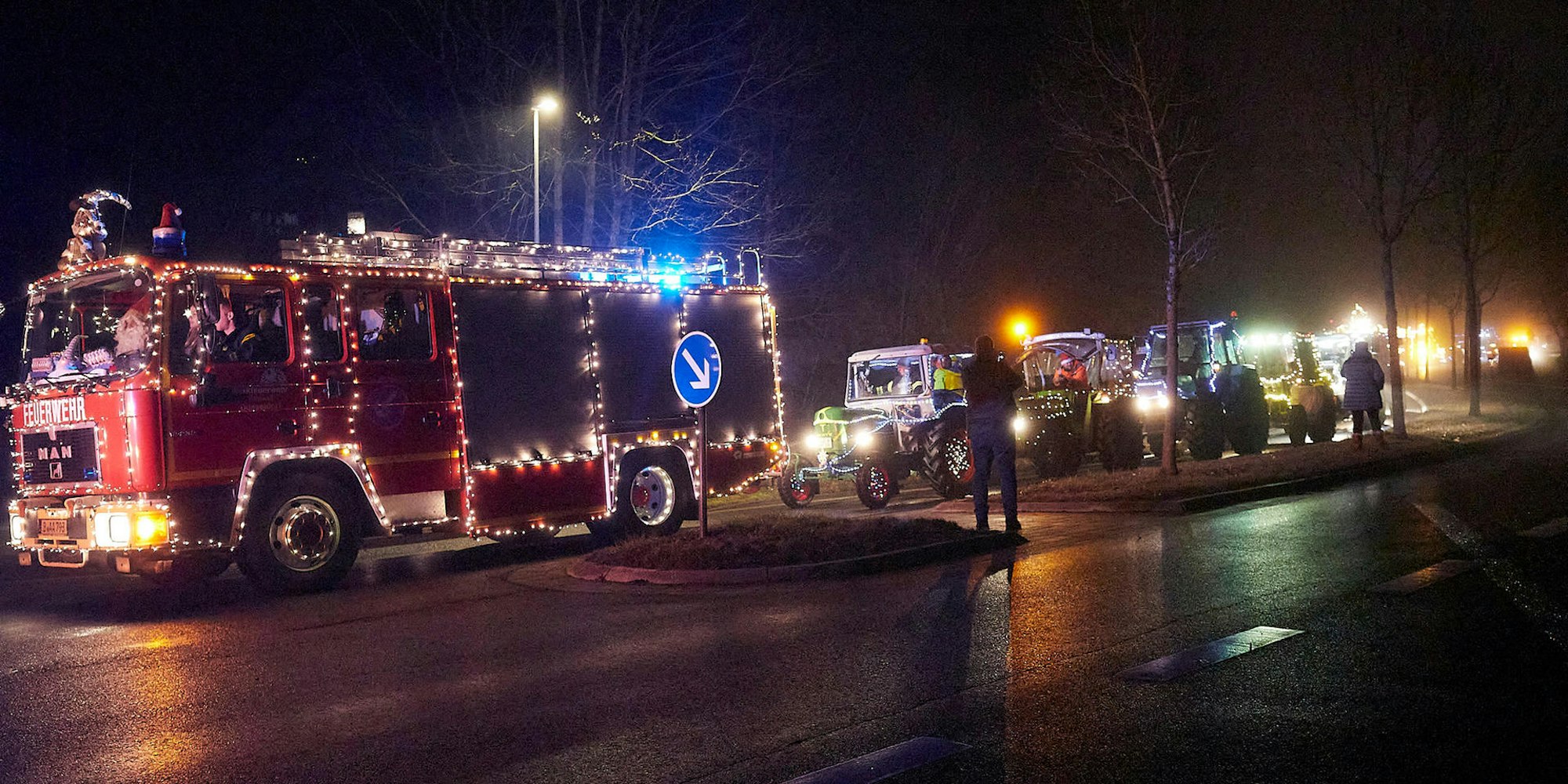 Als er vergangenen Montag beim Ordnungsamt sein Vorhaben angekündigt habe, sei er auf offene Ohren gestoßen. Am Mittwoch entschied die Verwaltung, Anmeldung und Genehmigungen zu übernehmen. Für die Organisation der Fahrer mit ihren Fahrzeugen war Sebastian Walter zuständig, der mit seinem Deutz teilnahm. Oldtimertraktoren waren genauso unterwegs wie riesige Ackerschlepper. Auf der Ladefläche des Lkw der Firma Völler aus Sistig fuhr ein Rentierschlitten mit; der gelbe Lastwagen aus dem Fuhrpark der Firma Kurth in Blankenheim, mit dem Dieter Hartmann unterwegs war, transportierte einen Weihnachtsmann.
