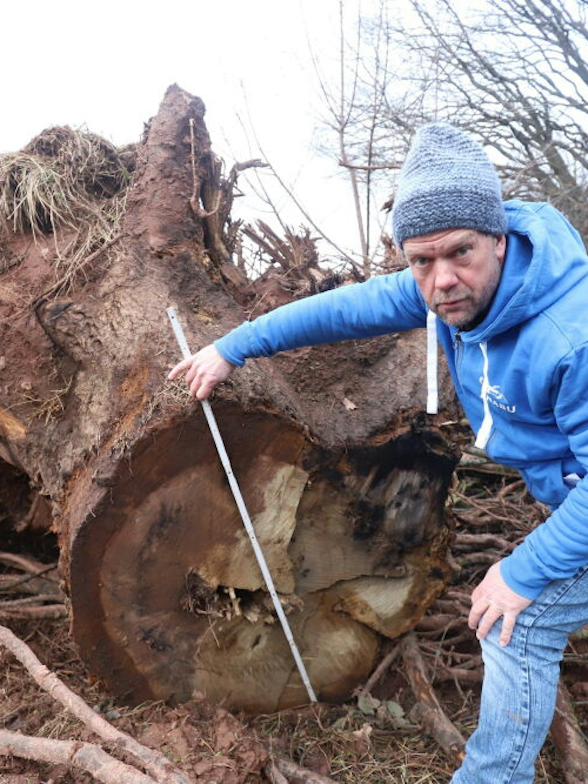 Ulrich Pohl maß nach: 120 Zentimeter betrug der Durchmesser der Eiche, die am Tag nach Neujahr gefällt wurde.