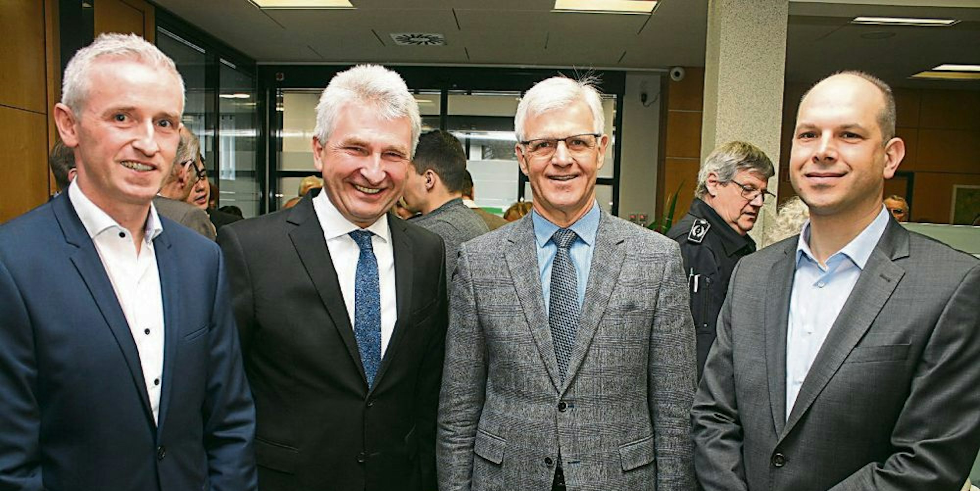 Hauptredner beim Neujahrsempfang der Kaller Liberalen war NRW-Wirtschaftsminister Andreas Pinkwart (2.v.l.), hier mit VR-Bank-Vorstand Kai Zinken (l.), Kalls FDP-Fraktionsvorsitzendem Manfred Wolter (2.v.r.) und Jörg Döhler, Ex- Ortsverbandschef.