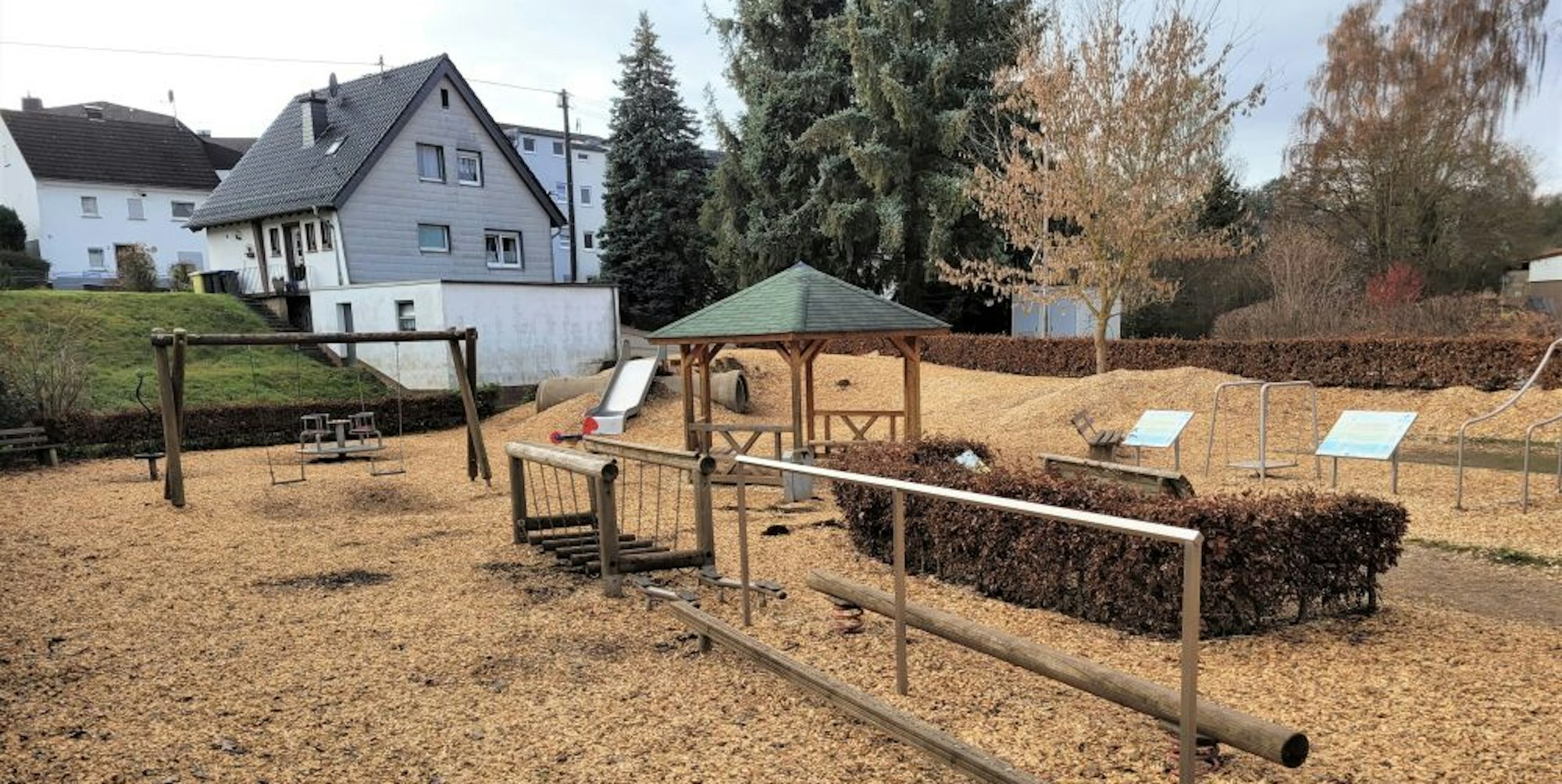 Holzhackschnitzel wurden auf den besonders belasteten Spielflächen wie hier in der Auelstraße verteilt.