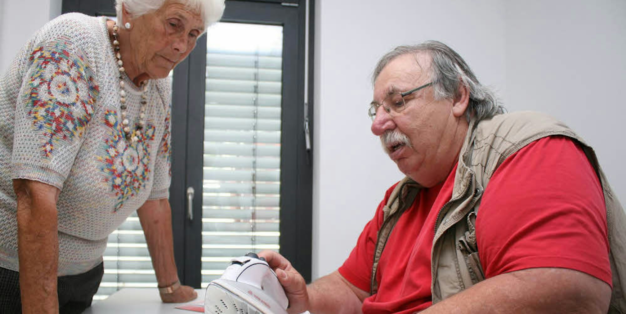 Die Sohle ihres Dampfbügeleisens heizt nicht mehr. Wilfriede Kremp hofft, dass Wolfgang Nowag helfen kann.