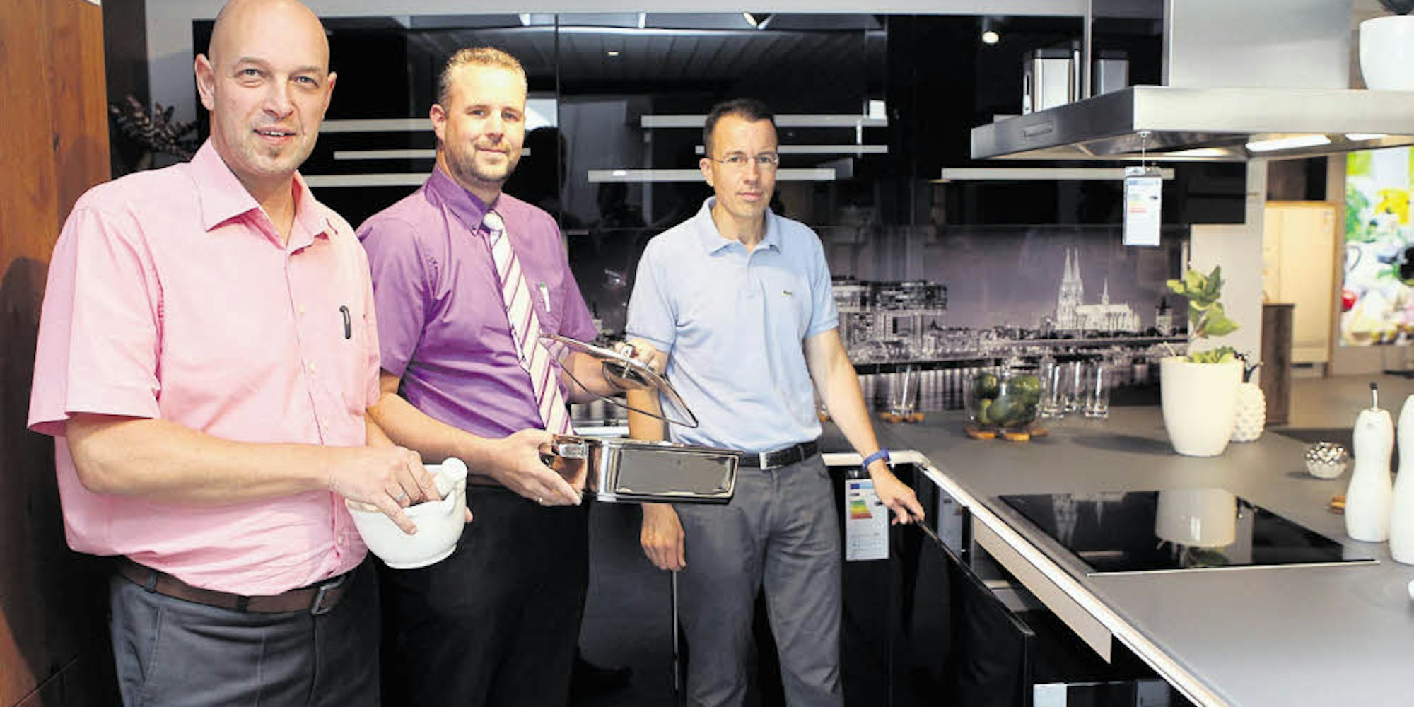 Die neue Küchenabteilung stellten Andreas Brucker (v.r.), Robert Becker und Gernot Zass vor.