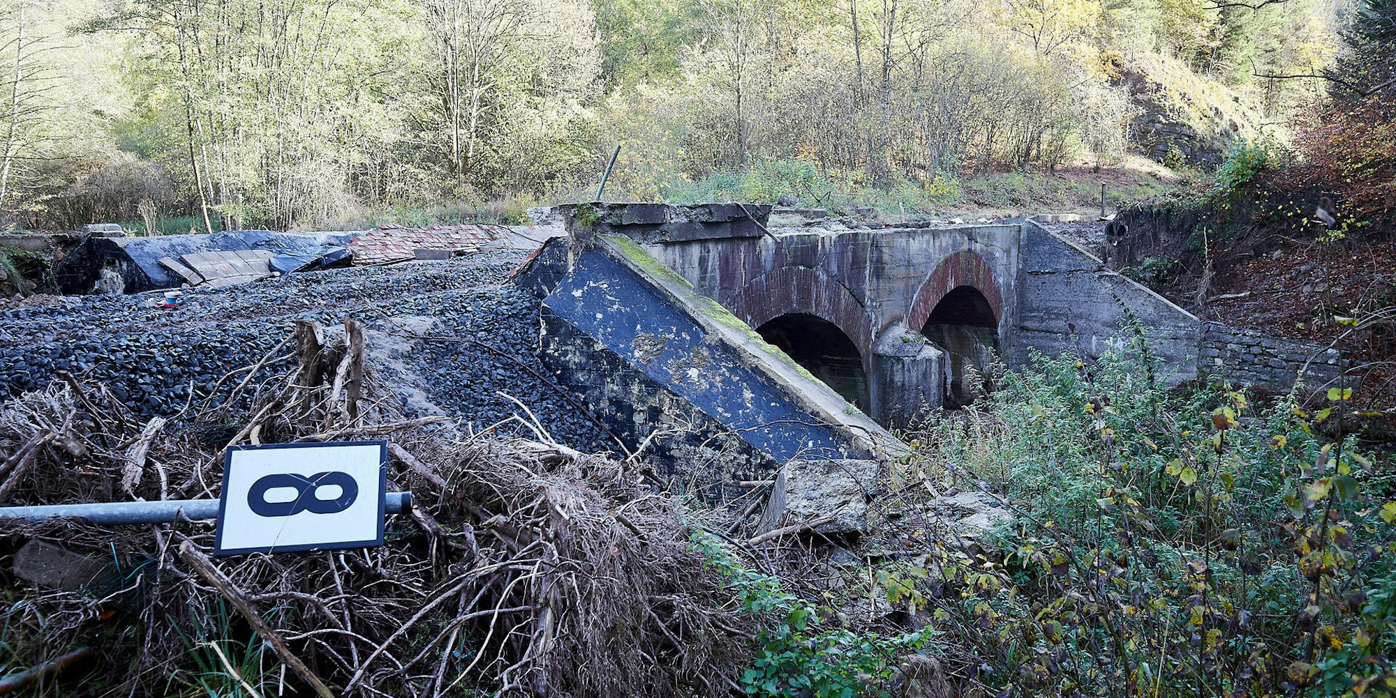 Zerstört sind auch Bahnübergänge, wie hier in Sötenich.
