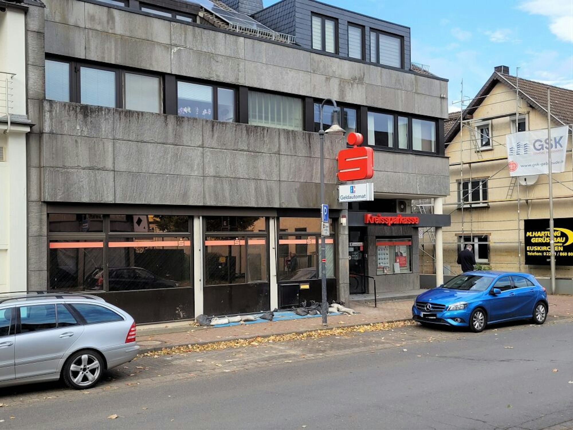 Die VR-Bank Nordeifel hat angekündigt, ihre Geschäftsstelle in der Aachener Straße aufzugeben und in das Gewerbegebiet umzuziehen. Anders sieht es bei der Filiale der Kreissparkasse aus. Dort ist der Rückbau abgeschlossen. „Das Gebäude wurde komplett entkernt und die Tresore und Automaten abgebaut“, berichtet Geschäftsstellenleiter Andreas Gier. Derzeit liefen noch die Trocknungsgeräte, danach beginne der Wiederaufbau. Wenn alles gut läuft, soll die Geschäftsstelle im Herbst 2022 fertiggestellt sein.