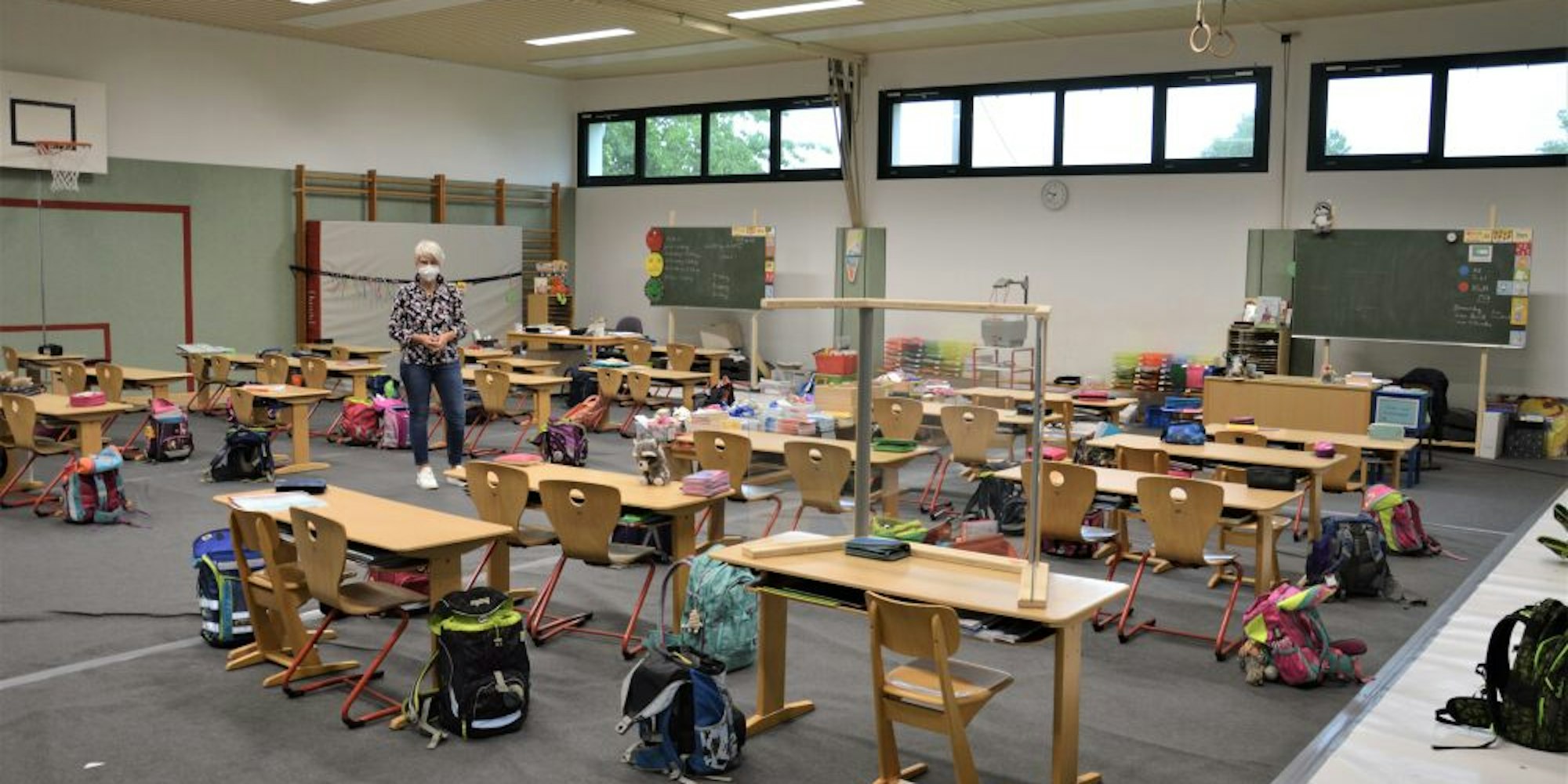 In der Turnhalle werden zurzeit die beiden vierten Klassen unterrichtet.