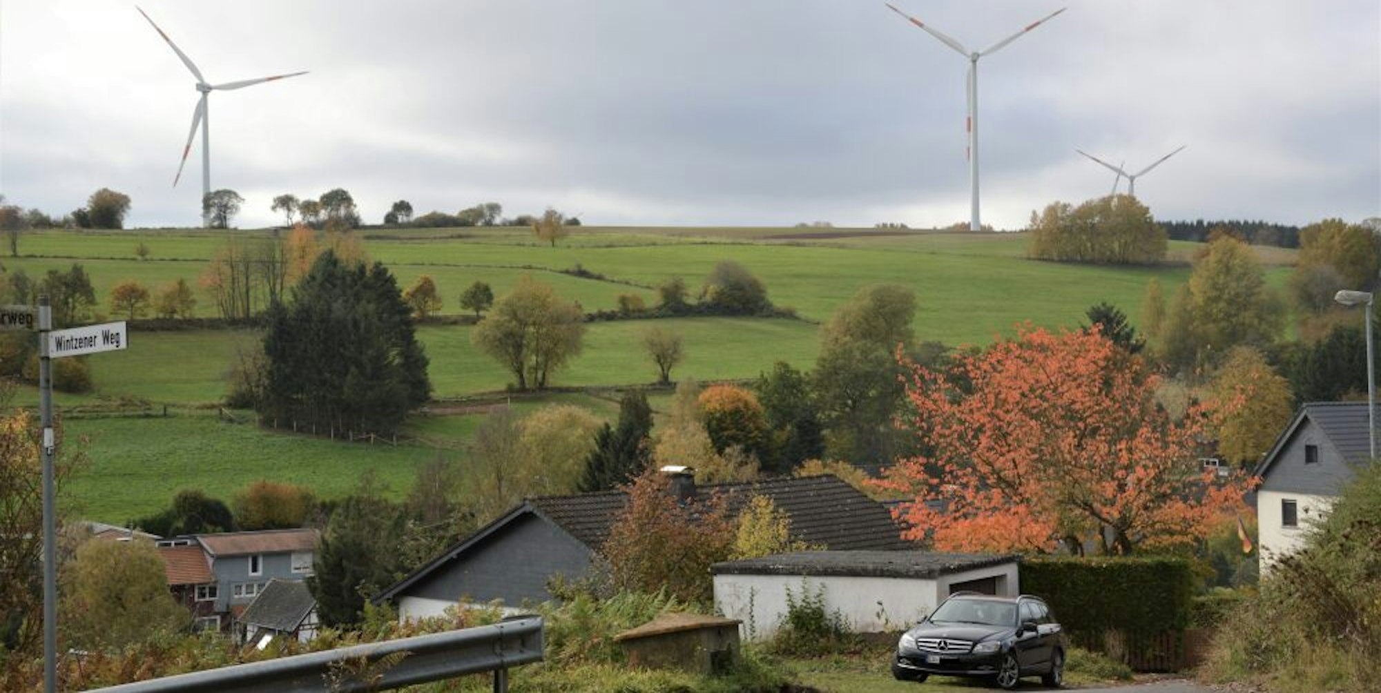 Einige Windräder auf dem Honderberg liegen nicht weit vom Ort Golbach entfernt.