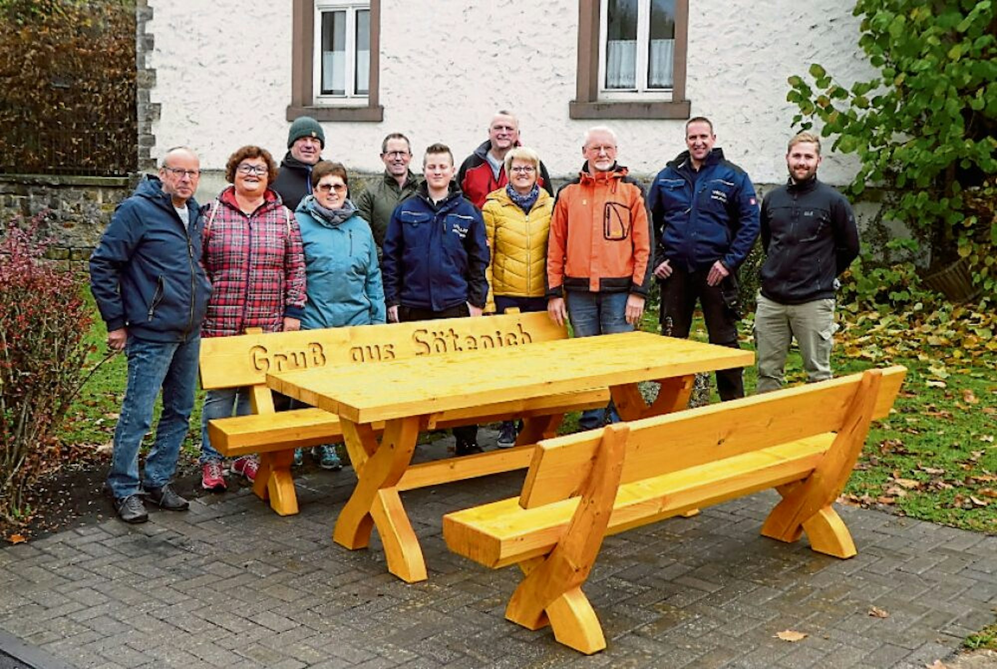 Dankbar sind der Ortsvorsteher und der Eifelverein dem Bauhof, der die Arbeiten unterstützt habe und Konzepte für weitere Aktionen mit entwickle. Ebenso dankbar ist Schäfer der Sistiger Firma Völler, die beide Sitzgruppen hergestellt und eine davon gestiftet hat. Bürgermeister Hermann-Josef Esser stiftet eine weitere Bank, die an einem der Feldwege in Richtung Keldenich aufgestellt wird, wo sie von Spaziergängern beider Ortschaften gut zu erreichen ist. „Von dort oben bietet sich ein wunderbarer Blick über Sötenich und das Urfttal weiter bis nach Steinfeld und zur Sistig-Krekeler Heide. Auch Rinnen ist von dort aus gut zu erkennen“, so der Bürgermeister.