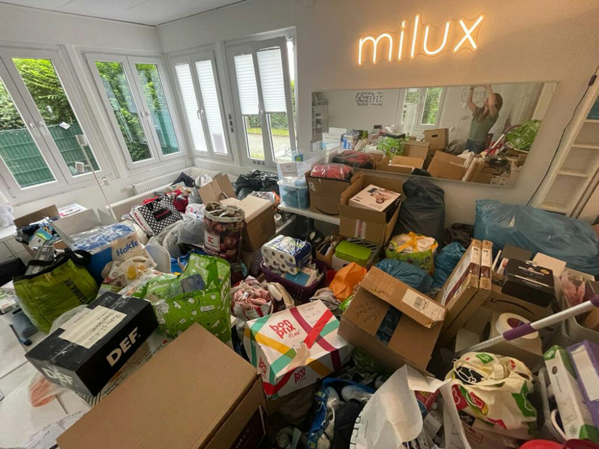 Nach der Flut wurde das Büro in ein Spendenlager verwandelt.