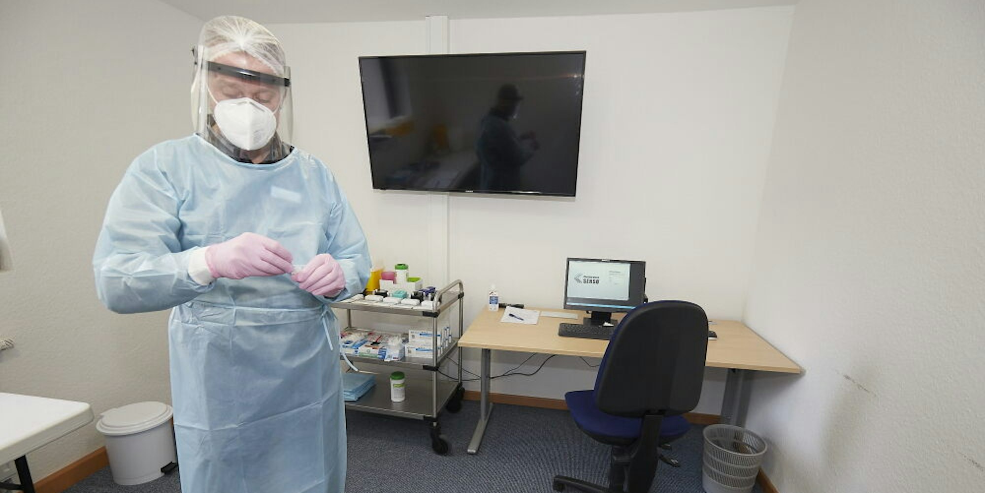Arno Brauckmann, Pflegedienstleiter am EvA, bereitet einen Corona-Test vor.