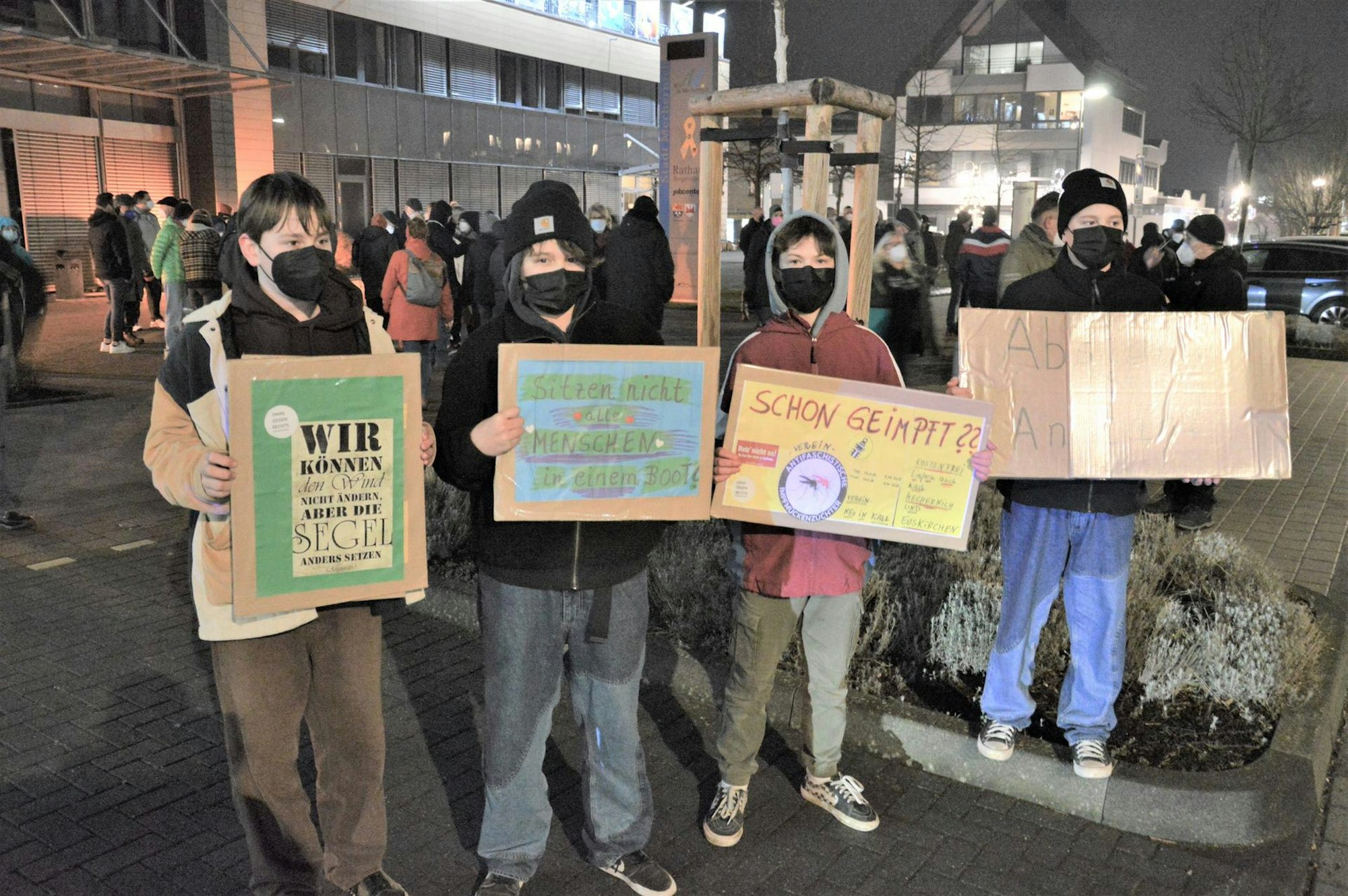 In Mechernich nahmen an einer Gegendemo vor dem Rathaus auch einige Jugendliche teil.