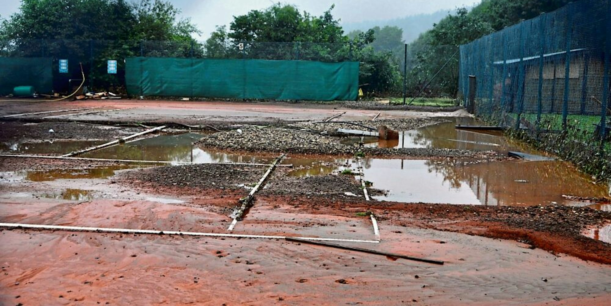 Der Kaller Tennisplatz wurde durch das Hochwasser teilweise zerstört.