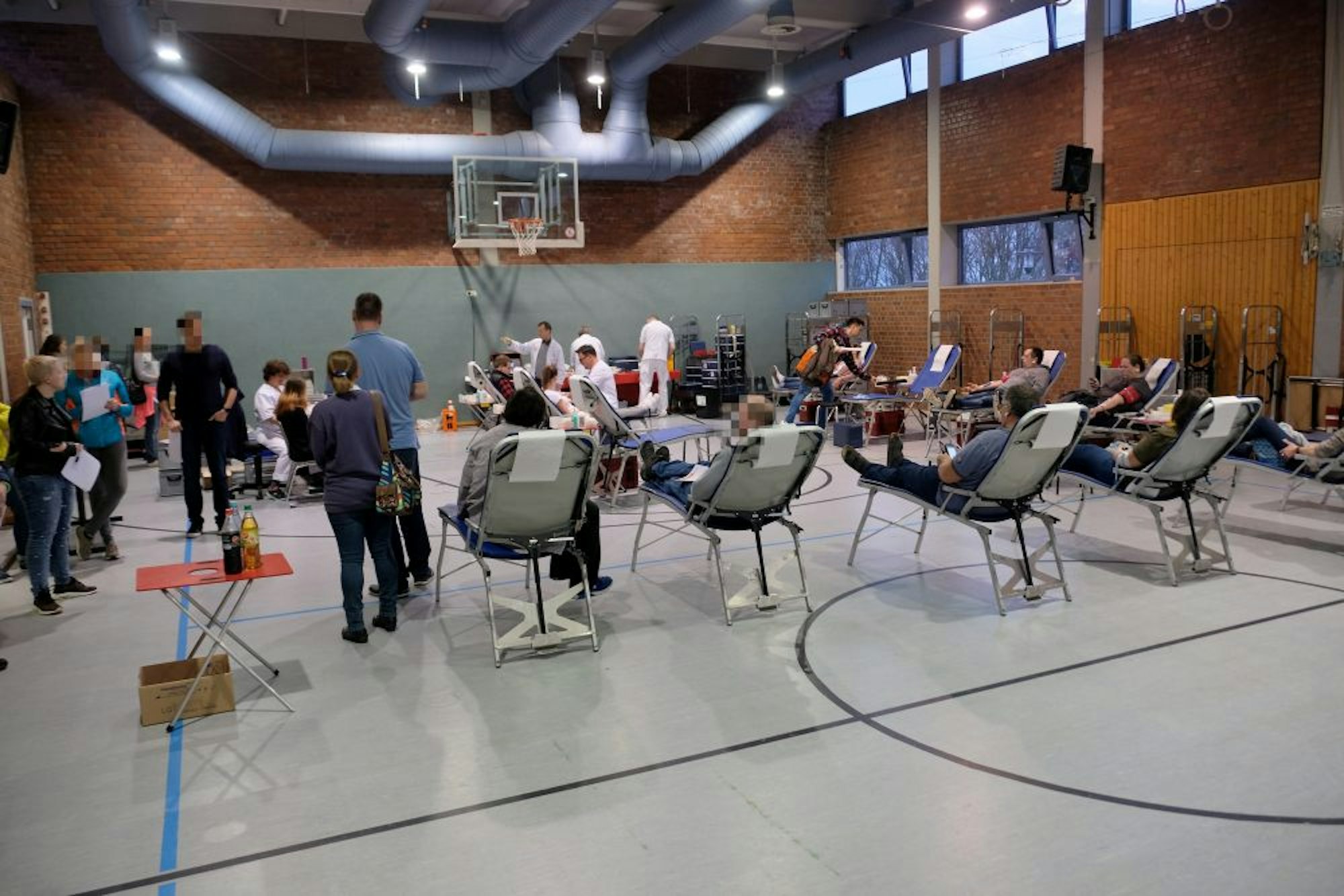 Im Gegensatz zu bisherigen Blutspendeterminen haben die Helfer diesmal den Ablauf entzerrt und dezentralisiert. Die Blutgruppen-Bestimmung ist in einen speziellen Kontrollpunkt in einer ruhigen Ecke der Turnhalle ausgelagert worden.