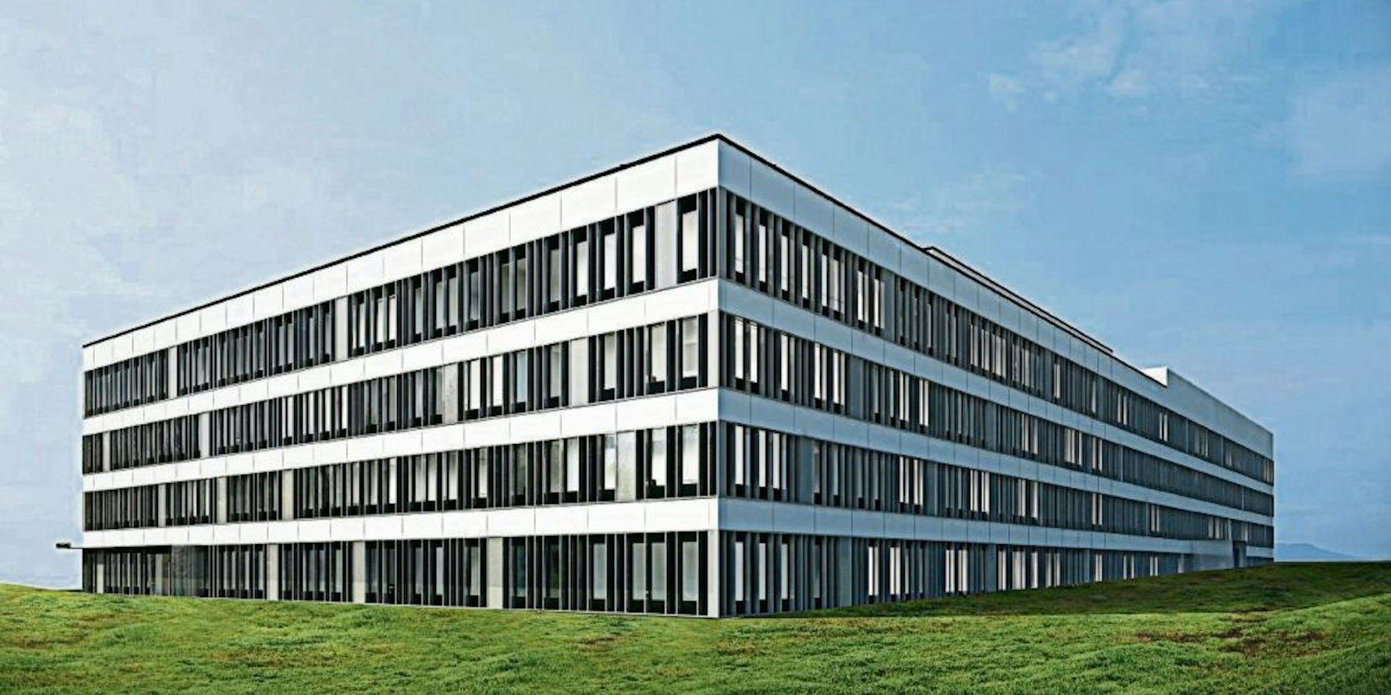 Optisch passt sich der Neubau dem Trakt C an. Außen besteht der Bau aus vorgehängten Aluminium-Verbundelementen mit Wärmedämmung aus nicht brennbarer Mineralfaser.