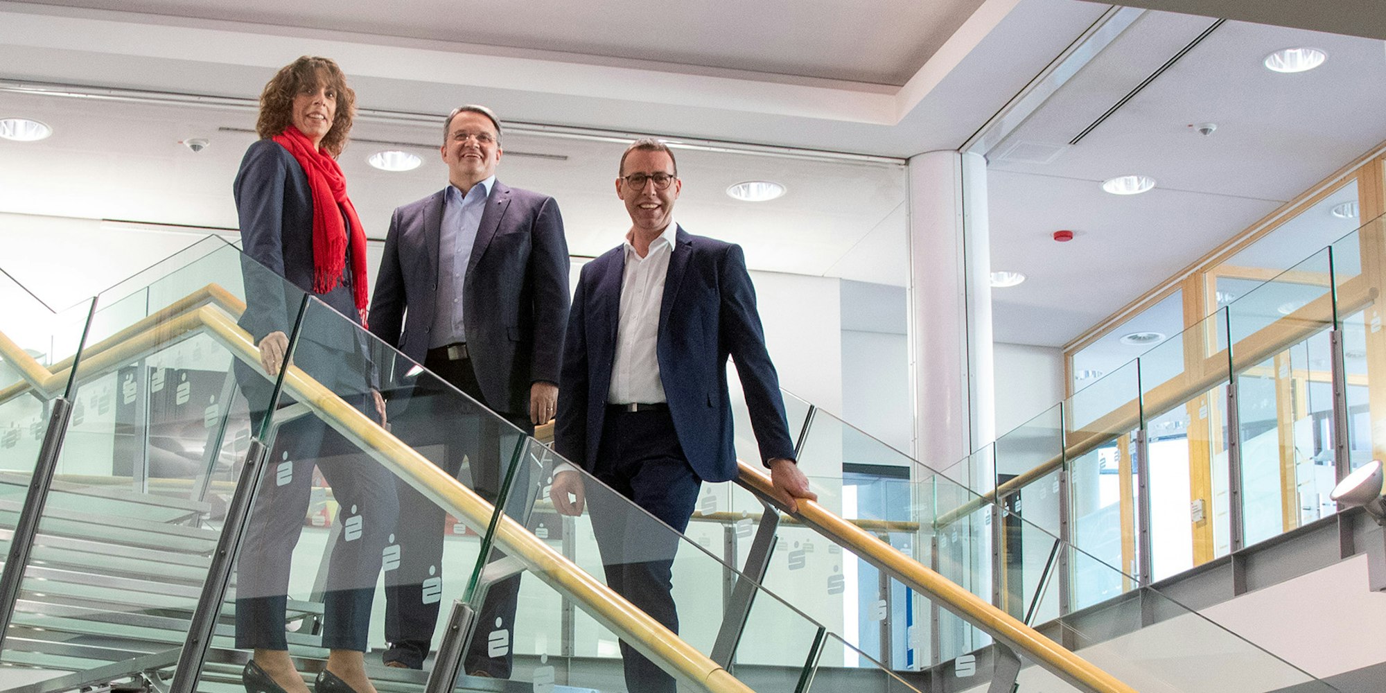 Die Leiterin des Beratungscenters, Elke Halbekann, mit KSK-Vorstandschef Becker und Vertriebsdirektor Zart (r.).