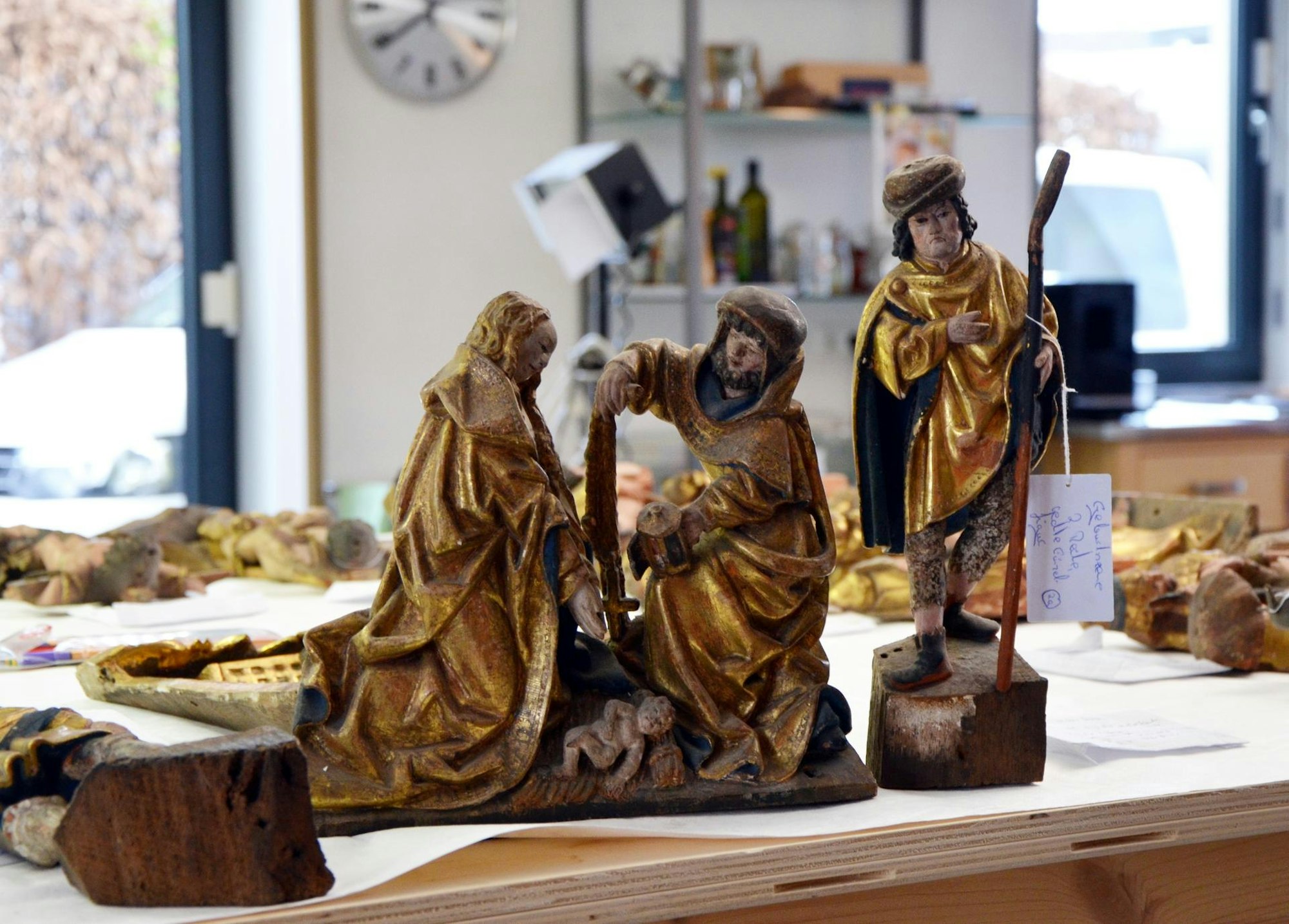 Die Geburtsszene gehört zum Märtyreraltar aus dem Xantener Dom. Sankowskys Team hat die Figuren zur Bearbeitung ausgebaut.