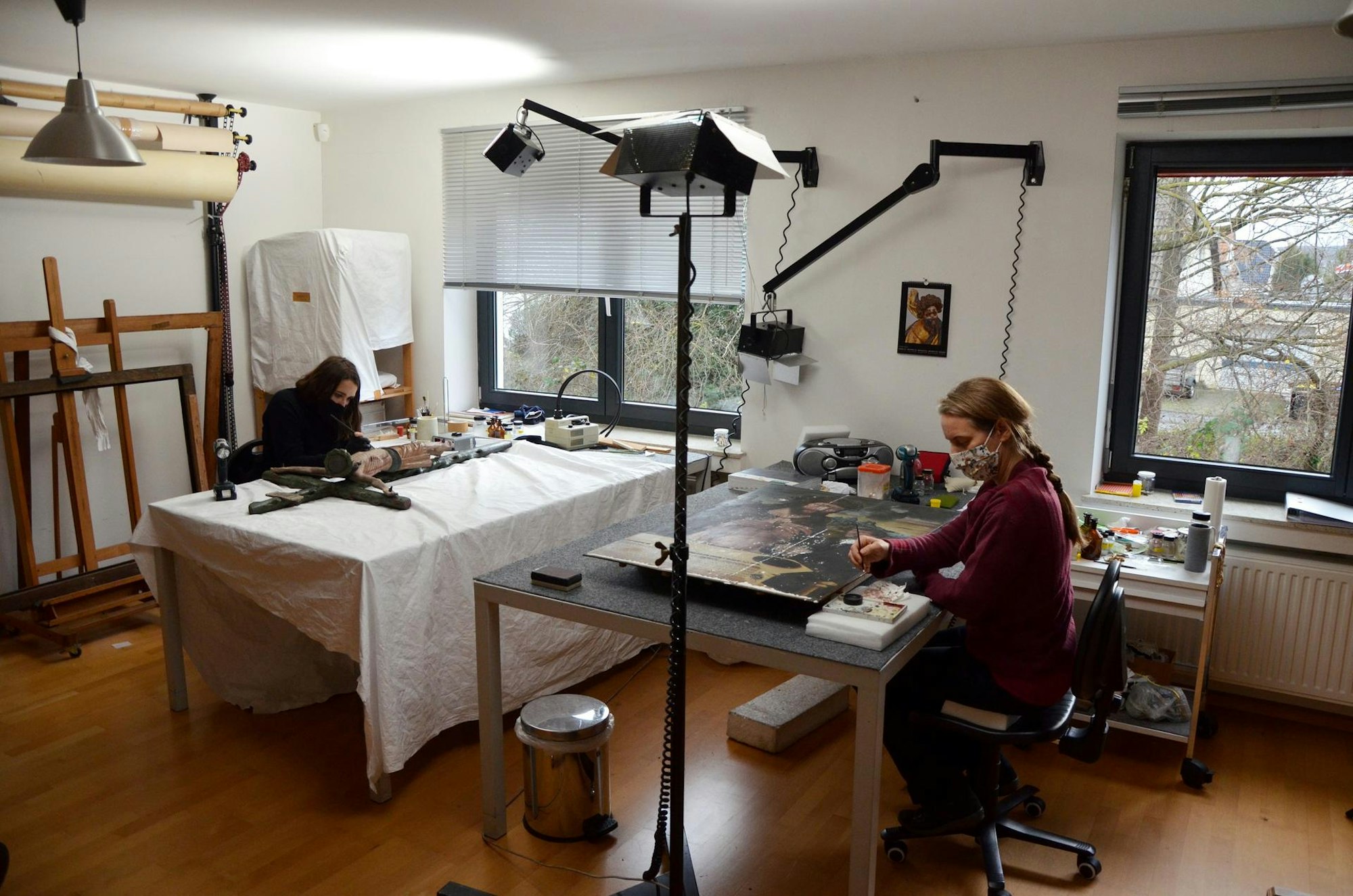 Im Obergeschoss des Euenheimer Ateliers restaurieren Sarah Renn (l.) und Karin Schulte Kunstwerke erster Güte.