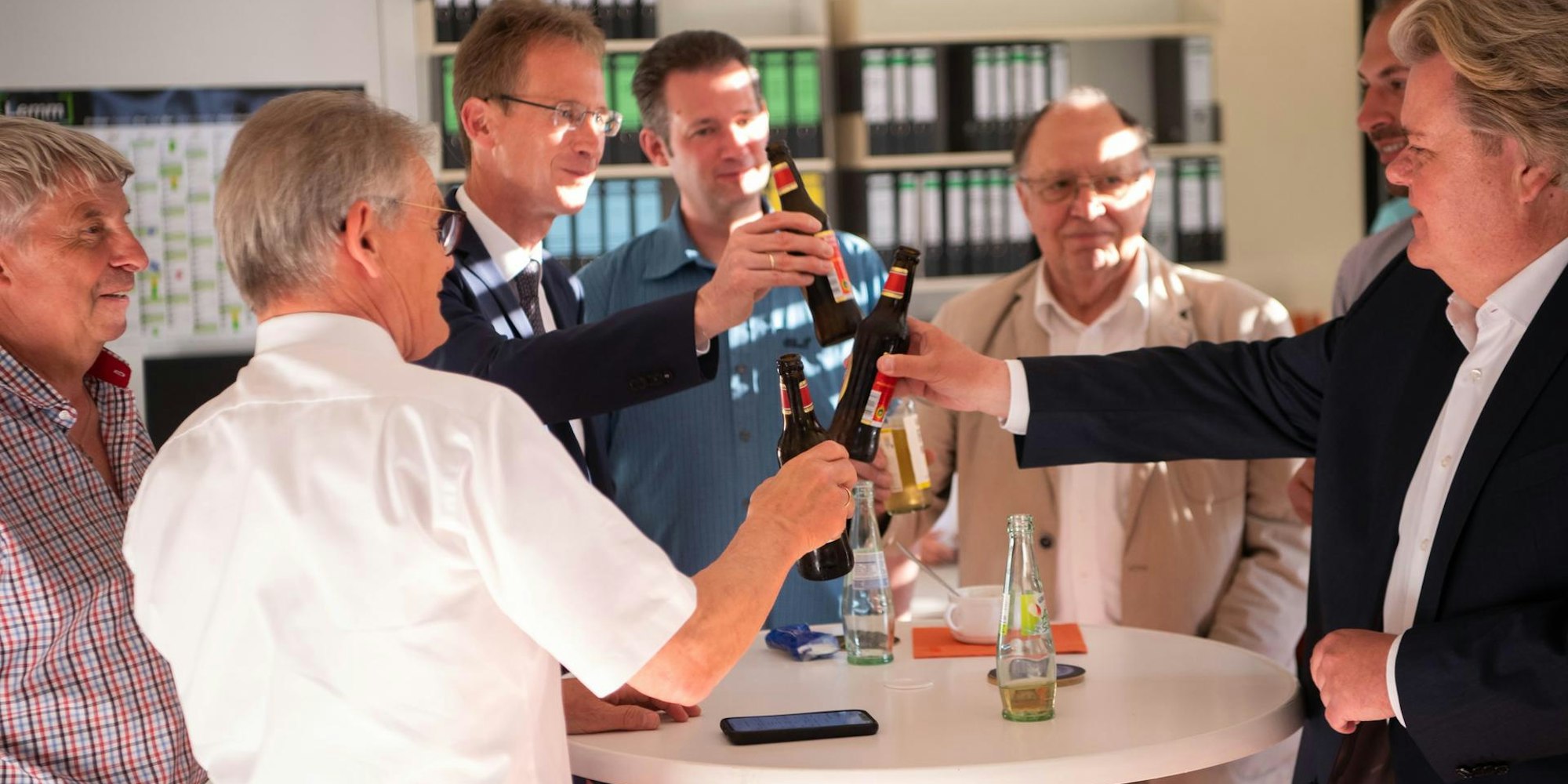 Prost auf den Wahlsieg: CDU-Direktkandidat Klaus Voussem (r.) feierte einen souveränen Erfolg und zieht zum vierten Mal in Folge in den Düsseldorfer Landtag ein.