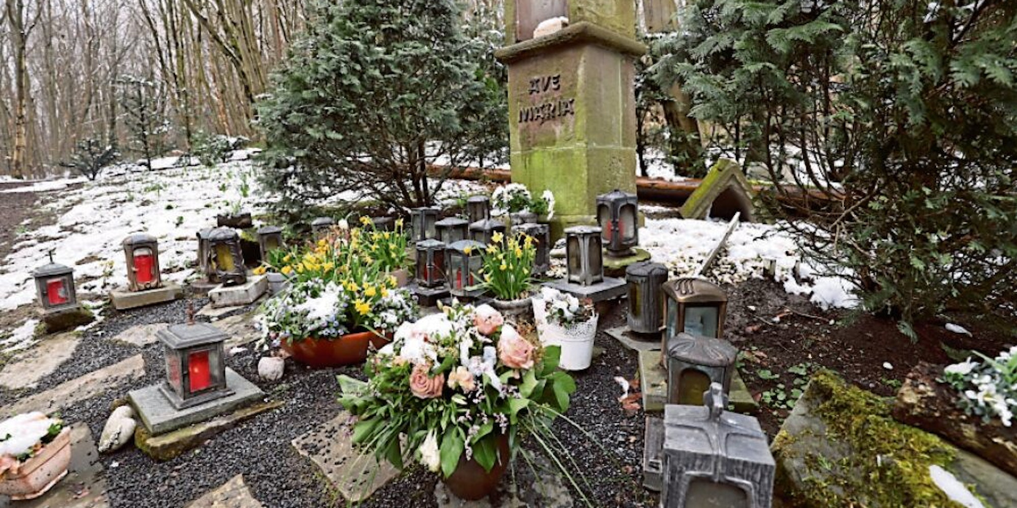 „Das waren keine normalen Vandalen“, äußerte sich deshalb Wolfgang Nowak, Geschäftsführer von Mariawald. Denn die Grableuchten, die vor dem Bildstock stehen, seien unversehrt. Doch warum die kleine Skulptur der Mutter Gottes mit dem Leichnam Christi mitgenommen worden ist, sei ihm unverständlich – einen materiellen Wert habe sie eigentlich nicht.