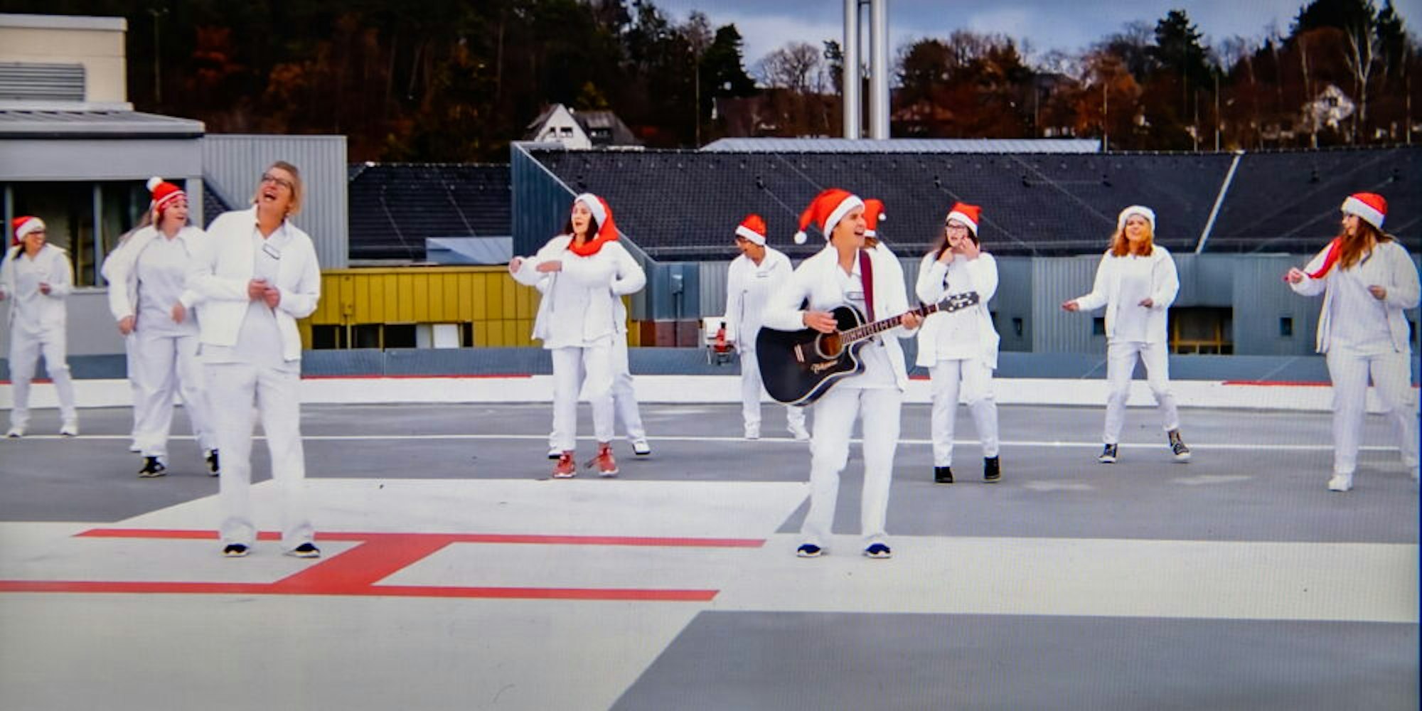 Als Nikoläuse auf dem Hubschrauberlandeplatz tanzte ein Teil der Belegschaft des Kreiskrankenhauses Mechernich für das Video zu ihrer ganz eigenen Version von „Last Christmas“.