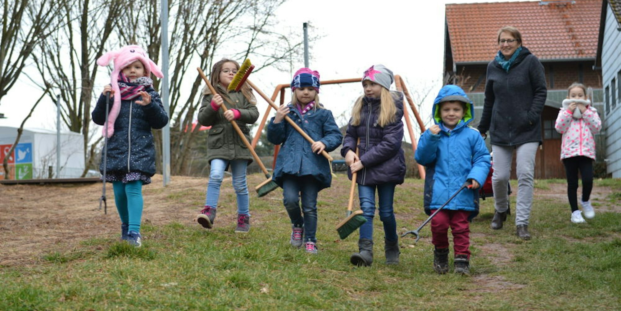 Mechernich-Bergheim – Mia, Leni und Linda schnappen sich einen Besen, Joshua, Elena und Felicity eine Greifzange und dann geht es los. Die sechs Kinder sind mit Walburga Nüßmann auf einer Mission: Sie wollen eine gute Tat vollbringen. Um genau zu sein, die 58. gute Tat in diesem Kindergartenjahr.